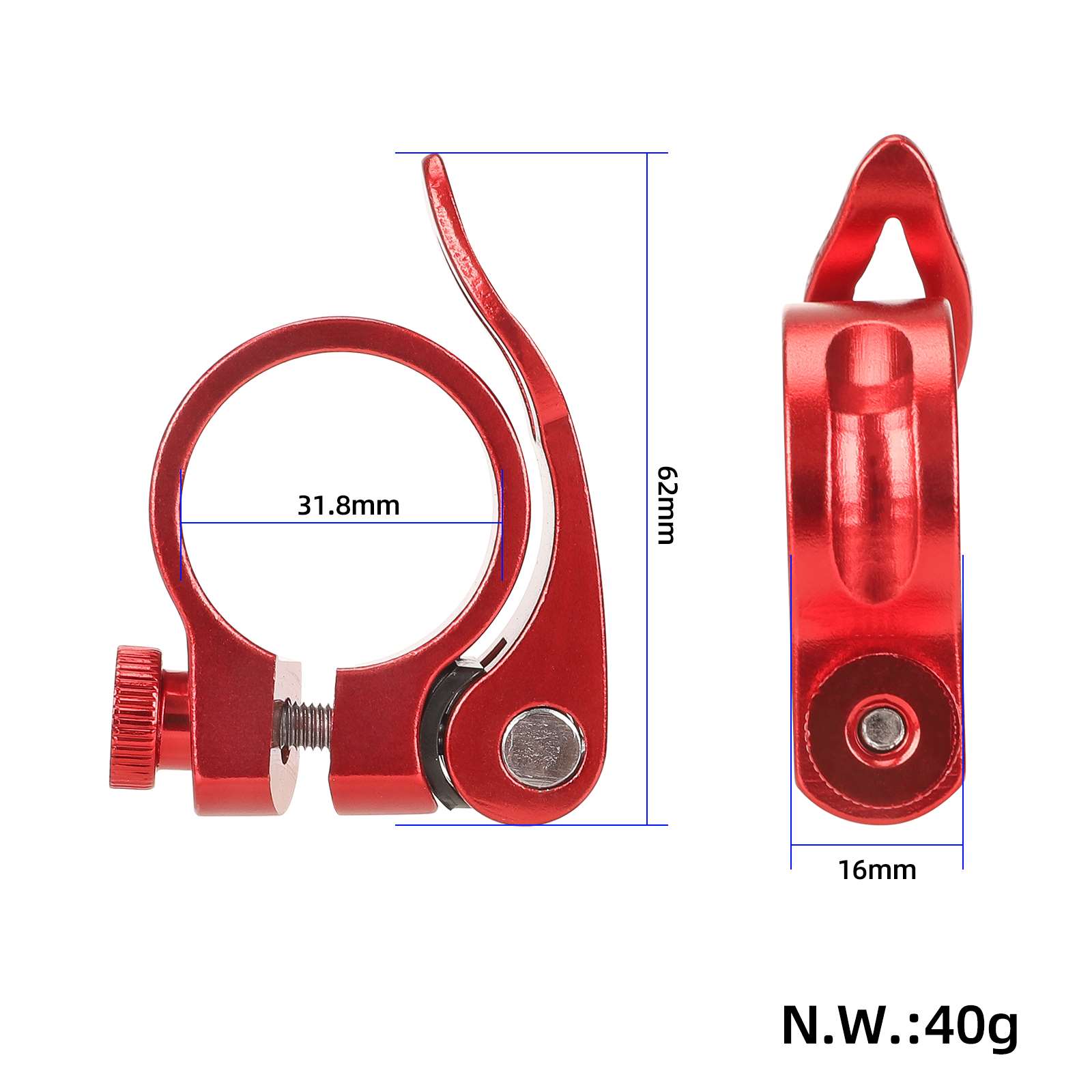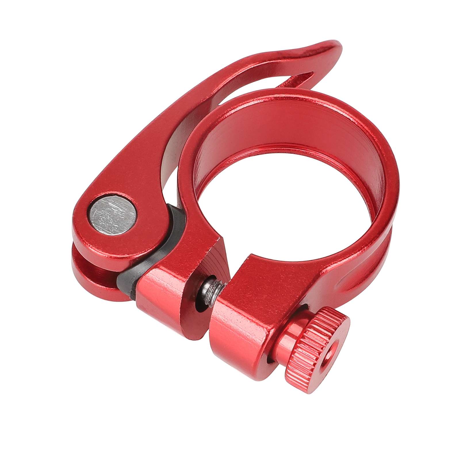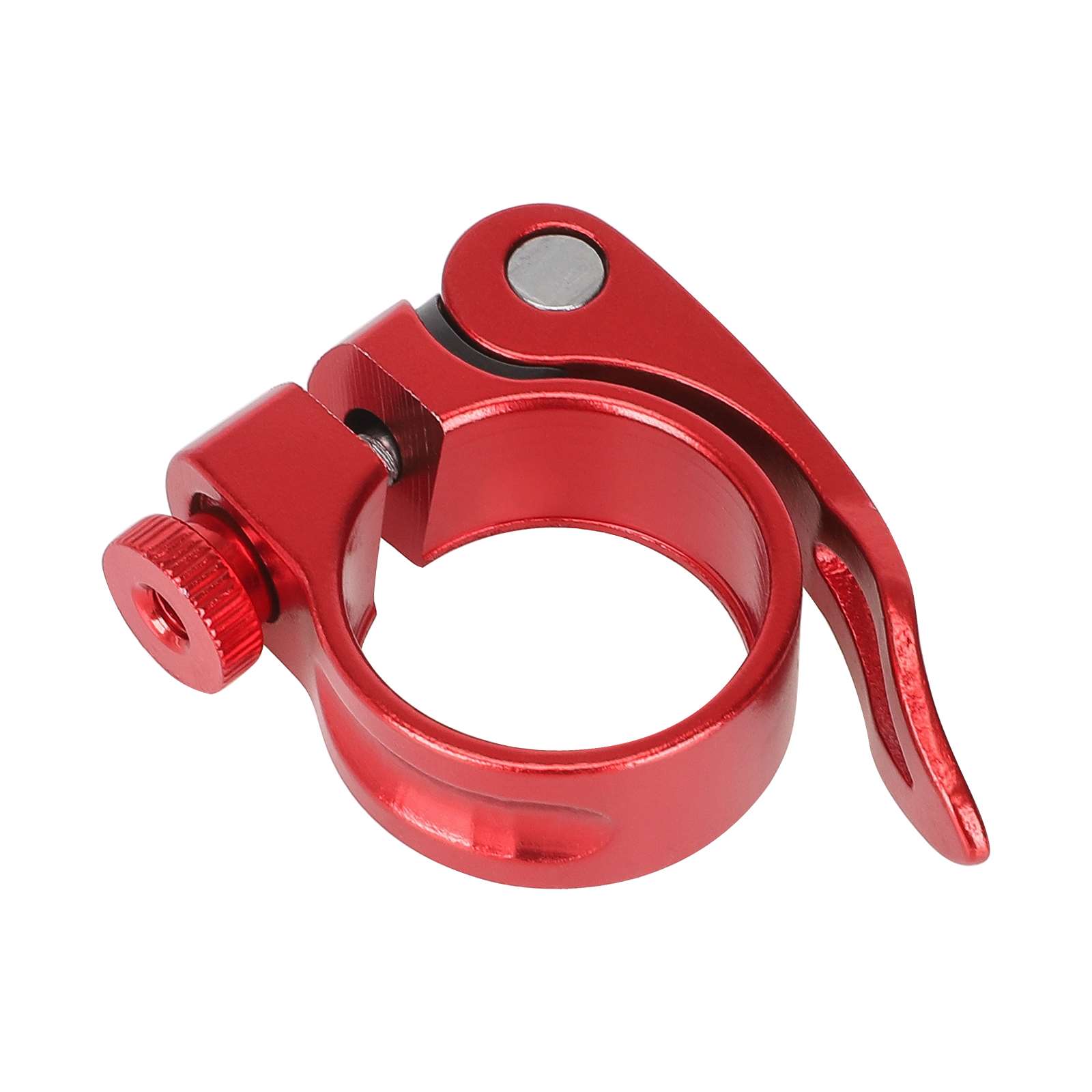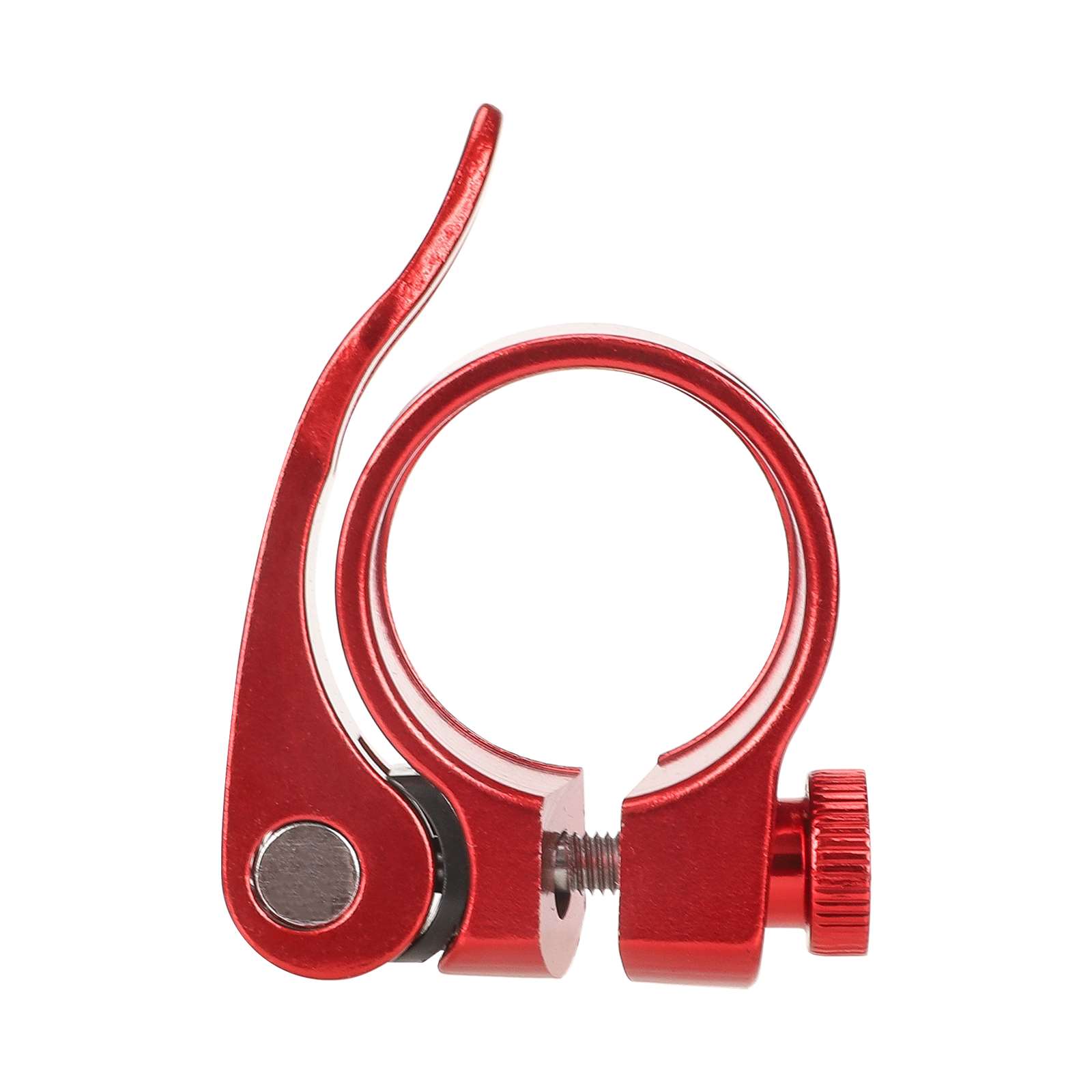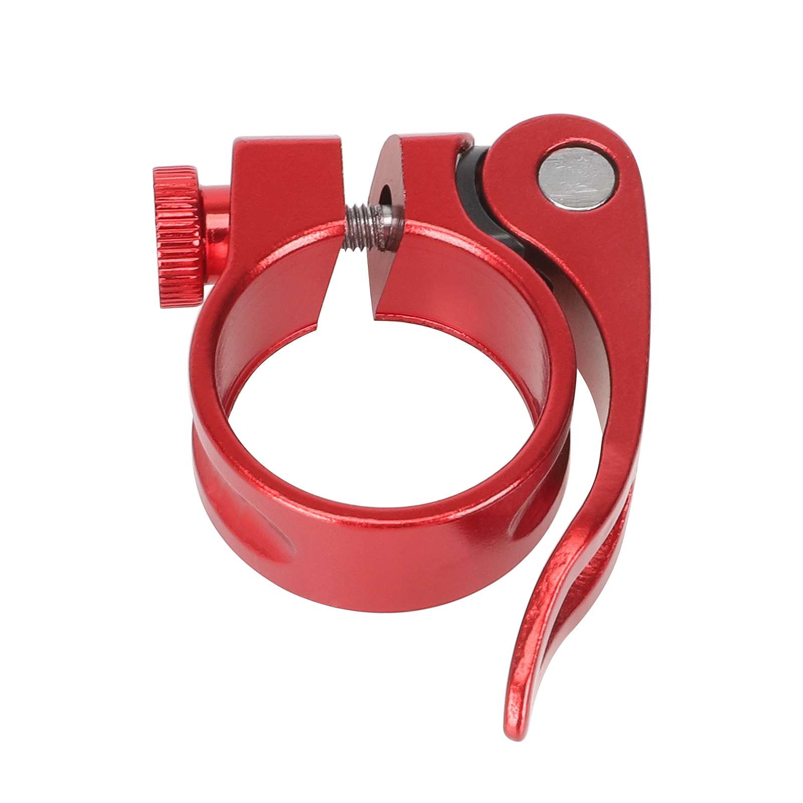 Abrazadera de tija de sillín roja sin orificio de 31,8 mm de aluminio, roja, sin orificios, para bicicleta de carretera, bicicleta de montaña, aleación de aluminio, ultraligera, de liberación rápida, abrazaderas de tija de sillín de liberación rápida.