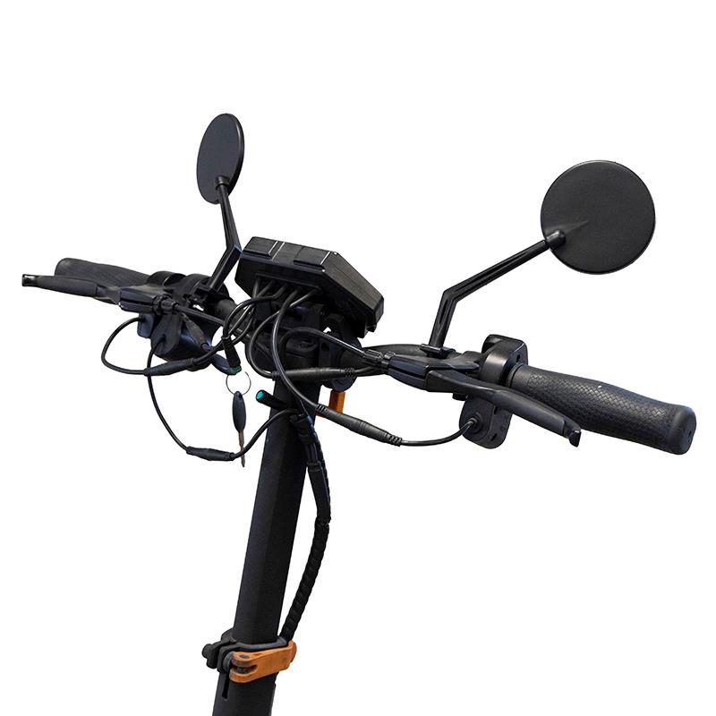 El juego de retrovisores eWheel EW01 está diseñado para mejorar la seguridad en tu patinete eléctrico. Incluye dos espejos convexos (derecho e izquierdo) que amplían la visibilidad del entorno. Gracias a sus dos ejes de rotación, permiten un ajuste preciso para adaptarse a tu ángulo de visión y garantizar una conducción más segura en ciudad o carretera. Compatibles con una amplia variedad de modelos de Xiaomi, Ninebot y SmartGyro.