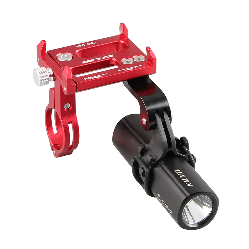 Soporte de teléfono para bicicleta GUB G-88 de aleación de aluminio con linterna, soporte para GoPro, soporte universal para manillar de bicicleta, con clip giratorio ajustable, apto para bicicletas de montaña y motocicletas, compatible con iPhone, Samsung Galaxy y teléfonos Android (rojo).