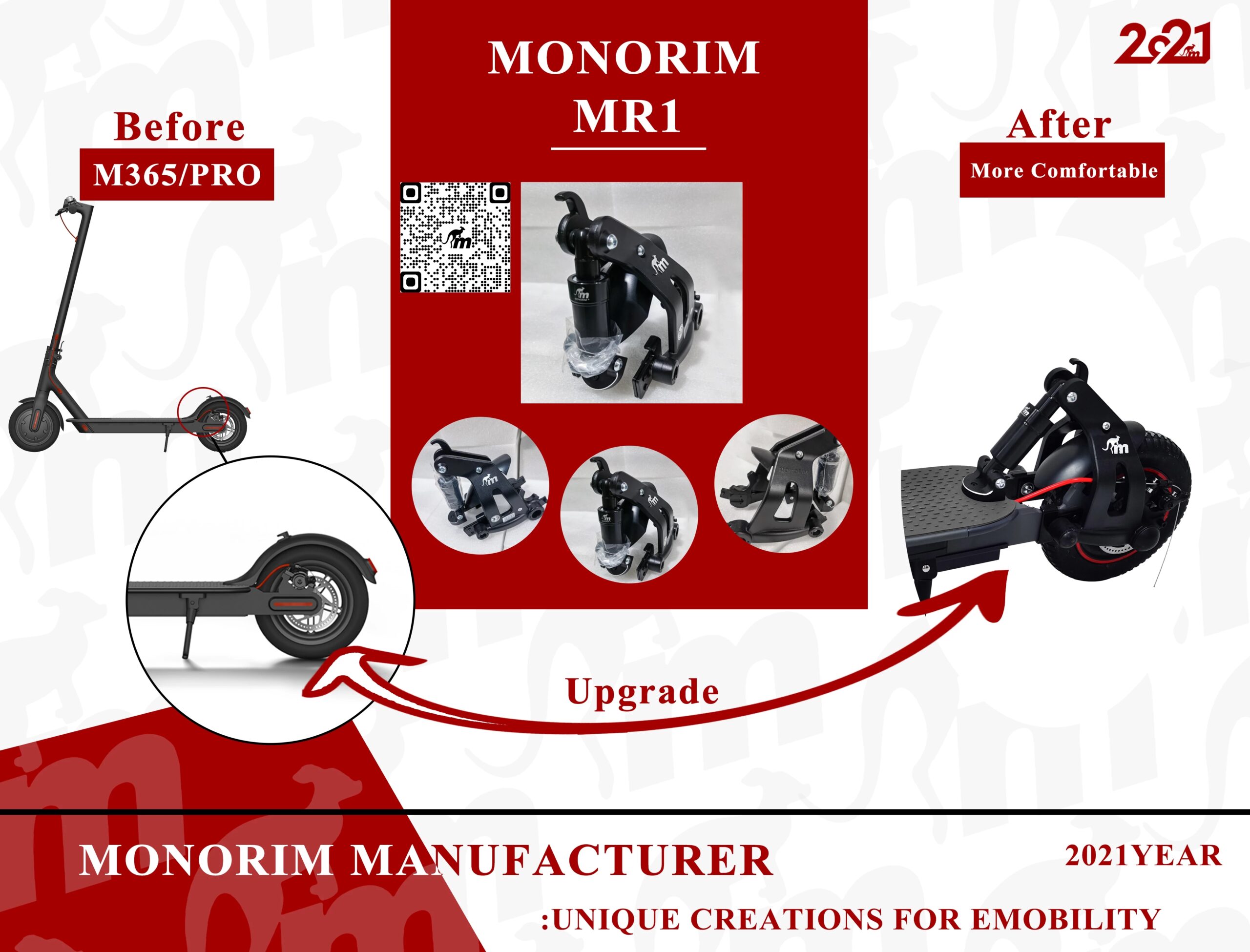 Suspensión trasera MR1-BB Monorim para patinetes Xiaomi M365, Pro y Pro 2 - Imagen 5