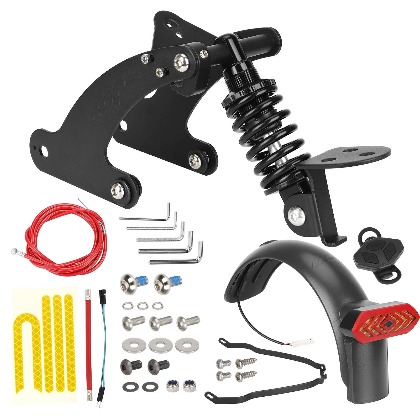 Inicio / Shop / PRODUCTOS / ACCESORIOS / Suspensión trasera Ulip V4 negra con guardabarros de señal de giro y soporte metálico de guardabarros trasero para scooter Pro/Pro2
