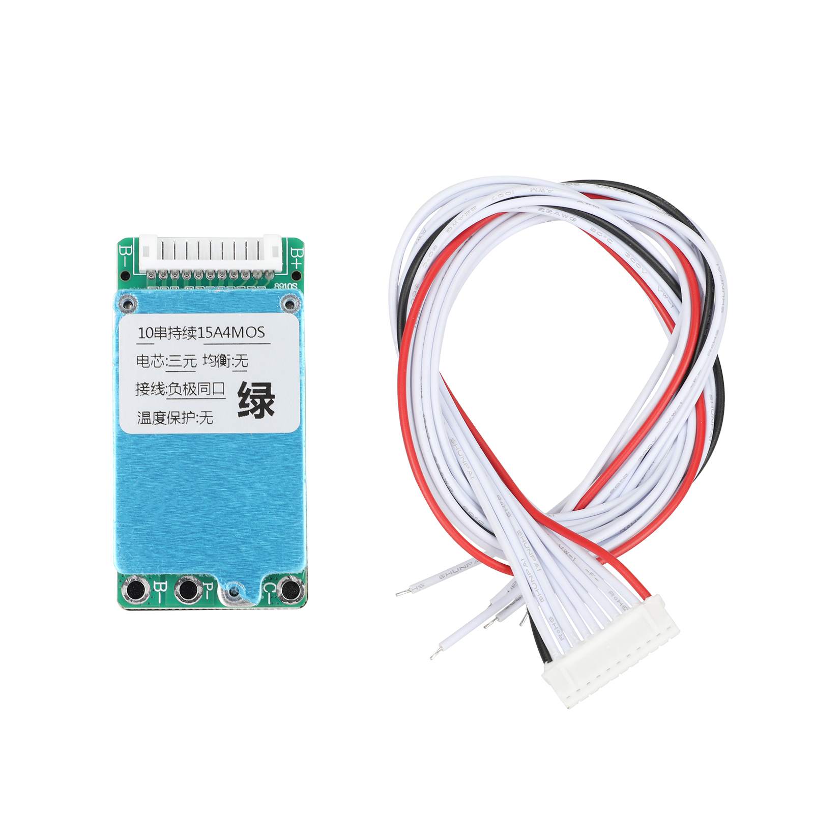 Placa de protección BMS ternaria de 10 cadenas, 36 V, 15 A, 4 MOS, mismo puerto