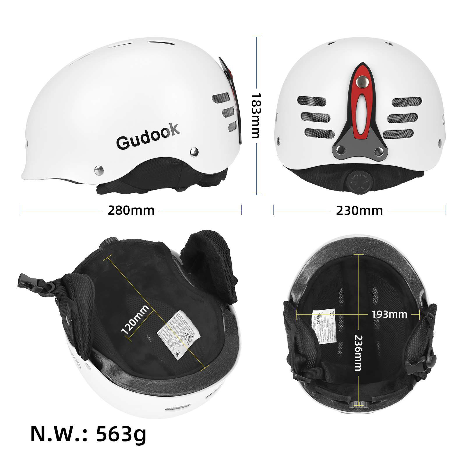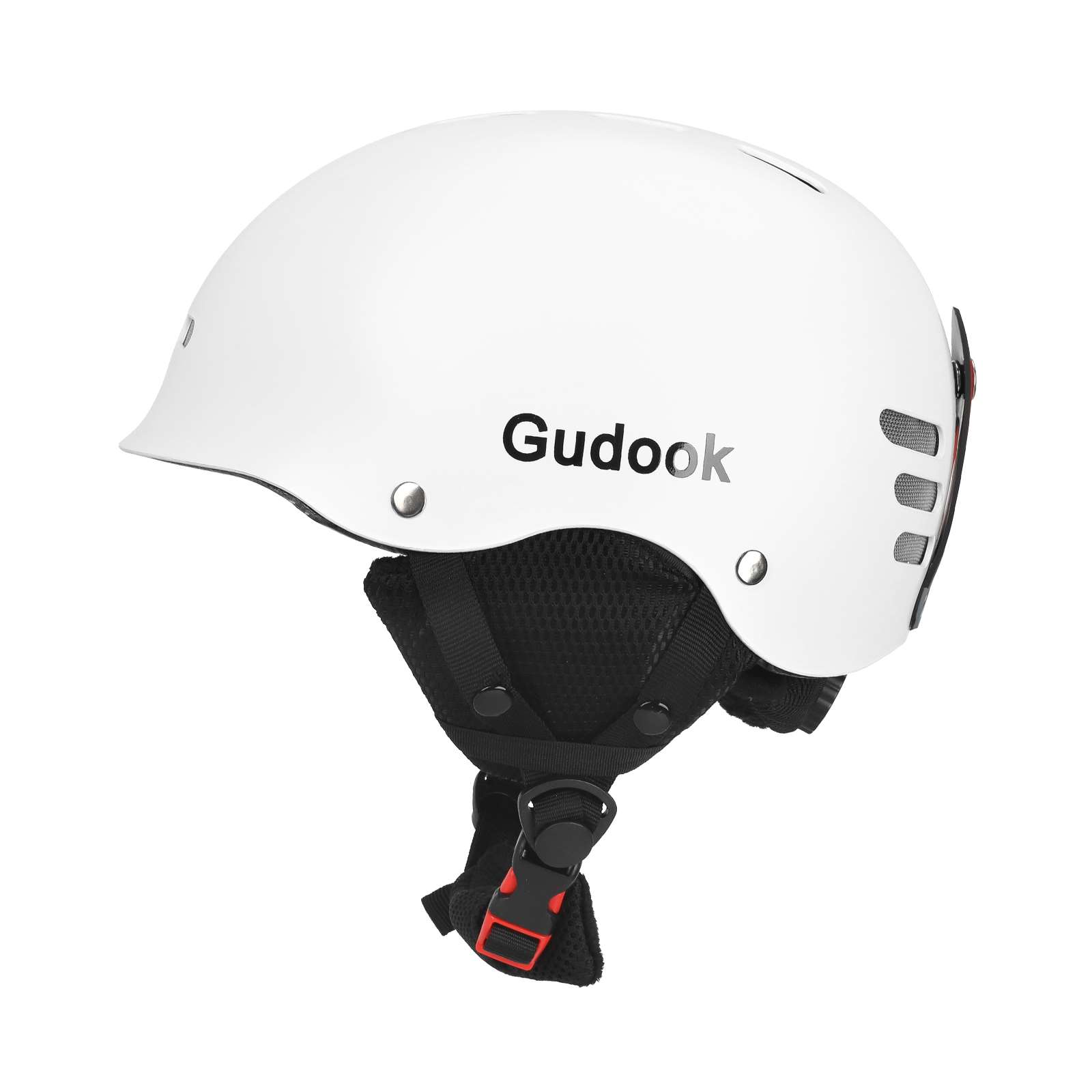 Casco blanco con protección auditiva, probado y certificado en Europa y Estados Unidos, para snowboard alpino y esquí, ideal para deportes de invierno.