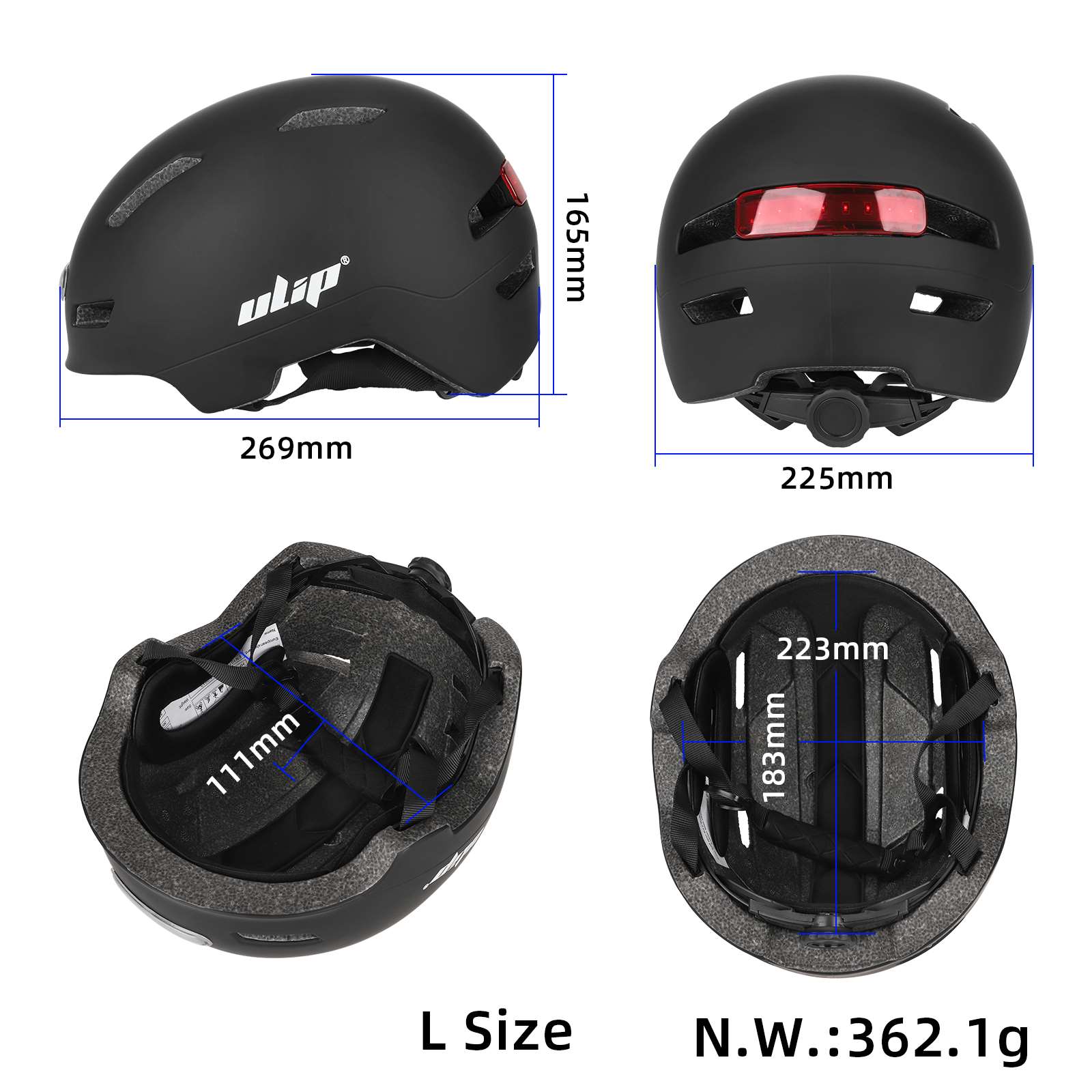 Casco Ulip negro talla L U002 con luces delanteras y traseras, luces LED, casco para scooter eléctrico, casco para andar en bicicleta, casco de seguridad para andar en patineta para mujeres y hombres, casco de bicicleta, casco de ciclismo, cascos de seguridad ajustables