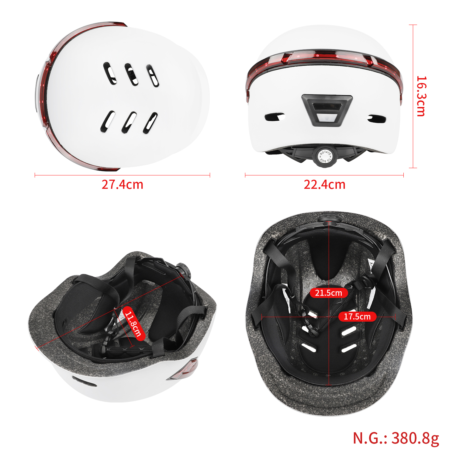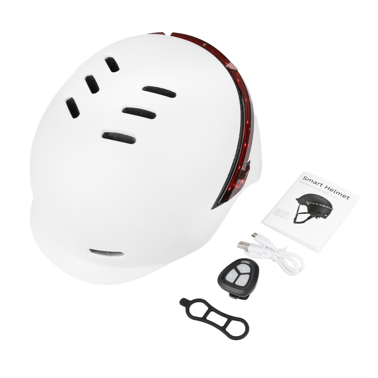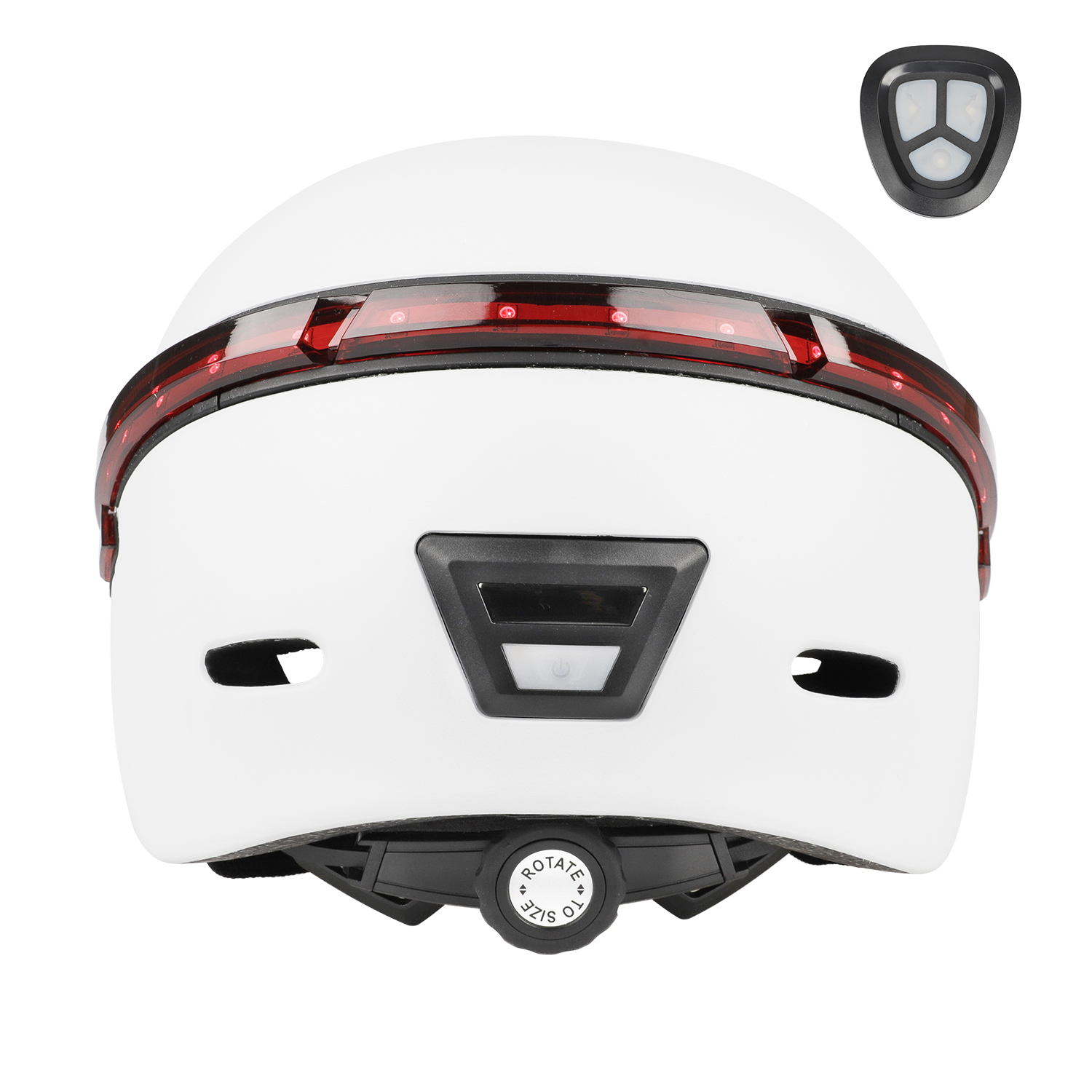 Casco blanco con indicador de dirección remoto, luz trasera de advertencia LED, luz trasera de bicicleta recargable y liviana, control remoto inalámbrico para casco de seguridad de motocicleta y bicicleta.