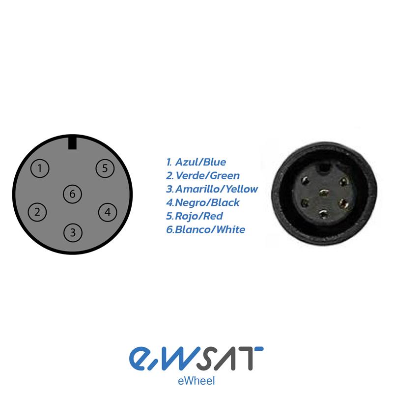 Válido para display Liviae, QS-S4, TF-100, J&P, etc. Conector waterproof (protección IP65 contra el agua) de 6 pines para la pantalla y conector SM 6 pines macho para controladora. Para la instalación en cualquier pantalla no se recomienda guiarse por los colores de los cables sino por el esquema de conector del cable y de la pantalla. Advertencia: El esquema está realizado de frente, al conectarlo con la pantalla se le da la vuelta es decir, los dos pines de la derecha pasan a estar en la izquierda.