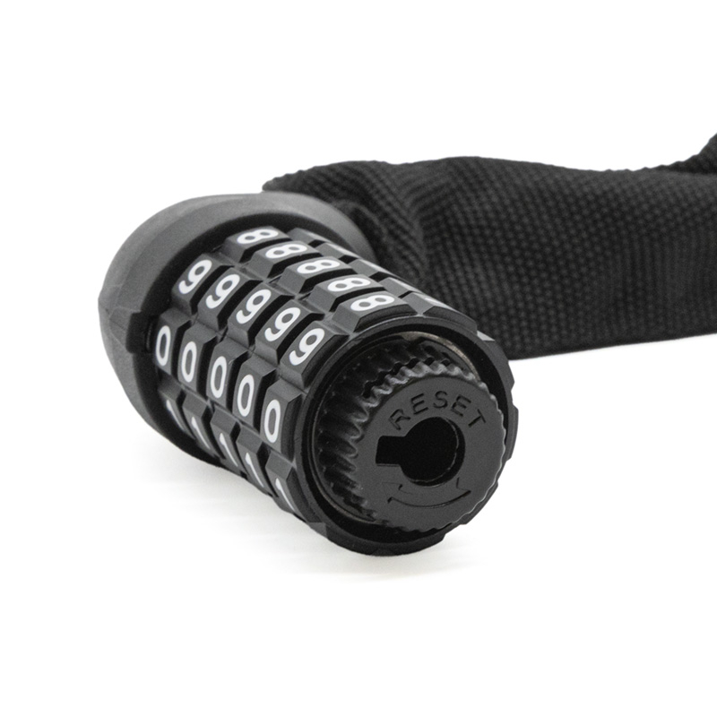 Candado tradicional de cadena, resistente, robusto y compacto. Para resetear la contraseña: – Marque las ruedas de combinación a 0000 y abra el candado separando la llave de la cerradura. – Gire 90 grados, en el sentido de las agujas del reloj, el engranaje que queda visible en el lado de la cerradura “Perilla” (Tiene escrito RESET). – Elija la nueva combinación y lleve la perilla a su estado inicial (90 grados en el sentido contrario de las agujas del reloj).