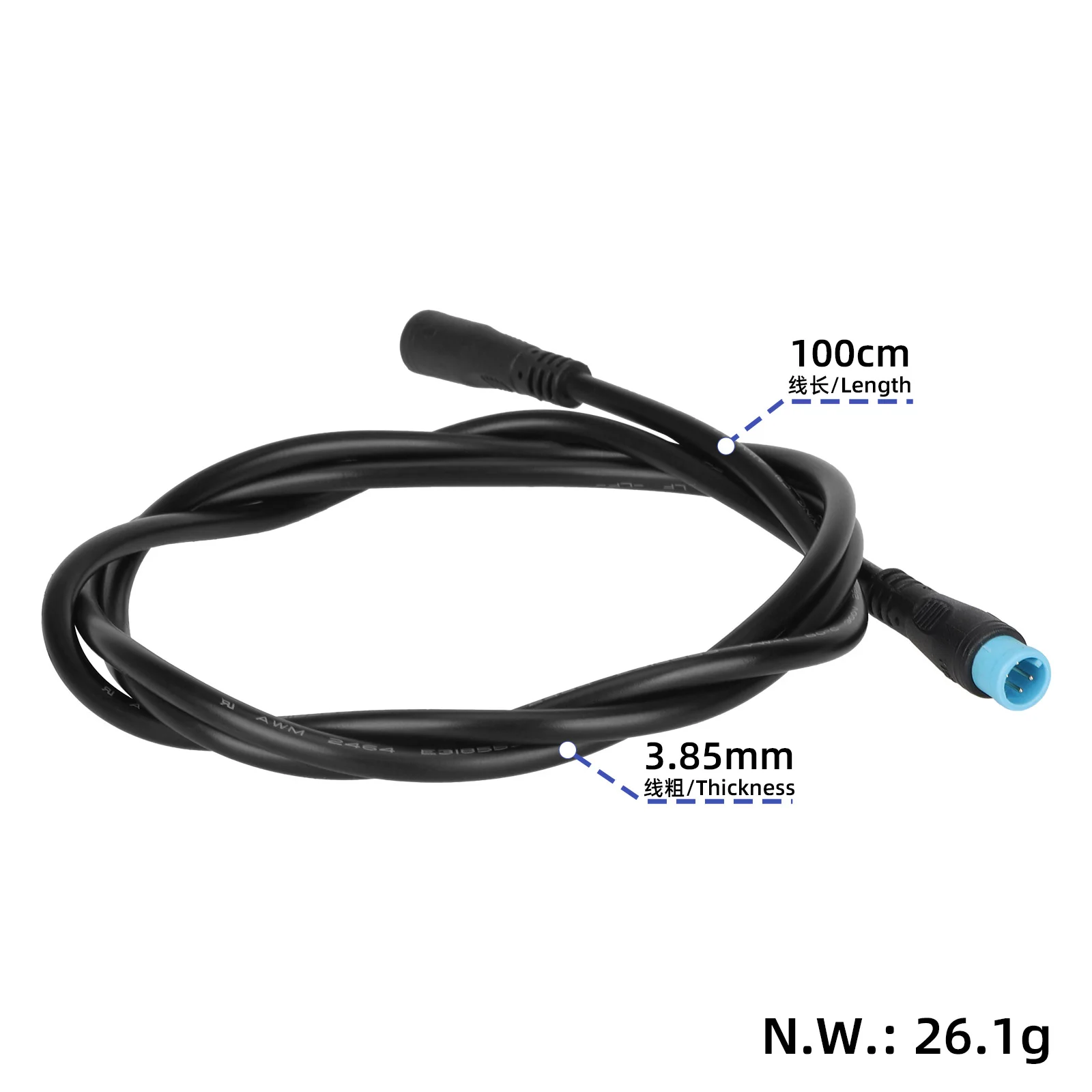 Cable conector impermeable M8 con cable azul de 4 pines, conector macho hembra de 100 cm, cable conector para bicicleta eléctrica con enchufe macho a hembra de 4 pines para bicicletas eléctricas, accesorio de enchufe de cable impermeable.