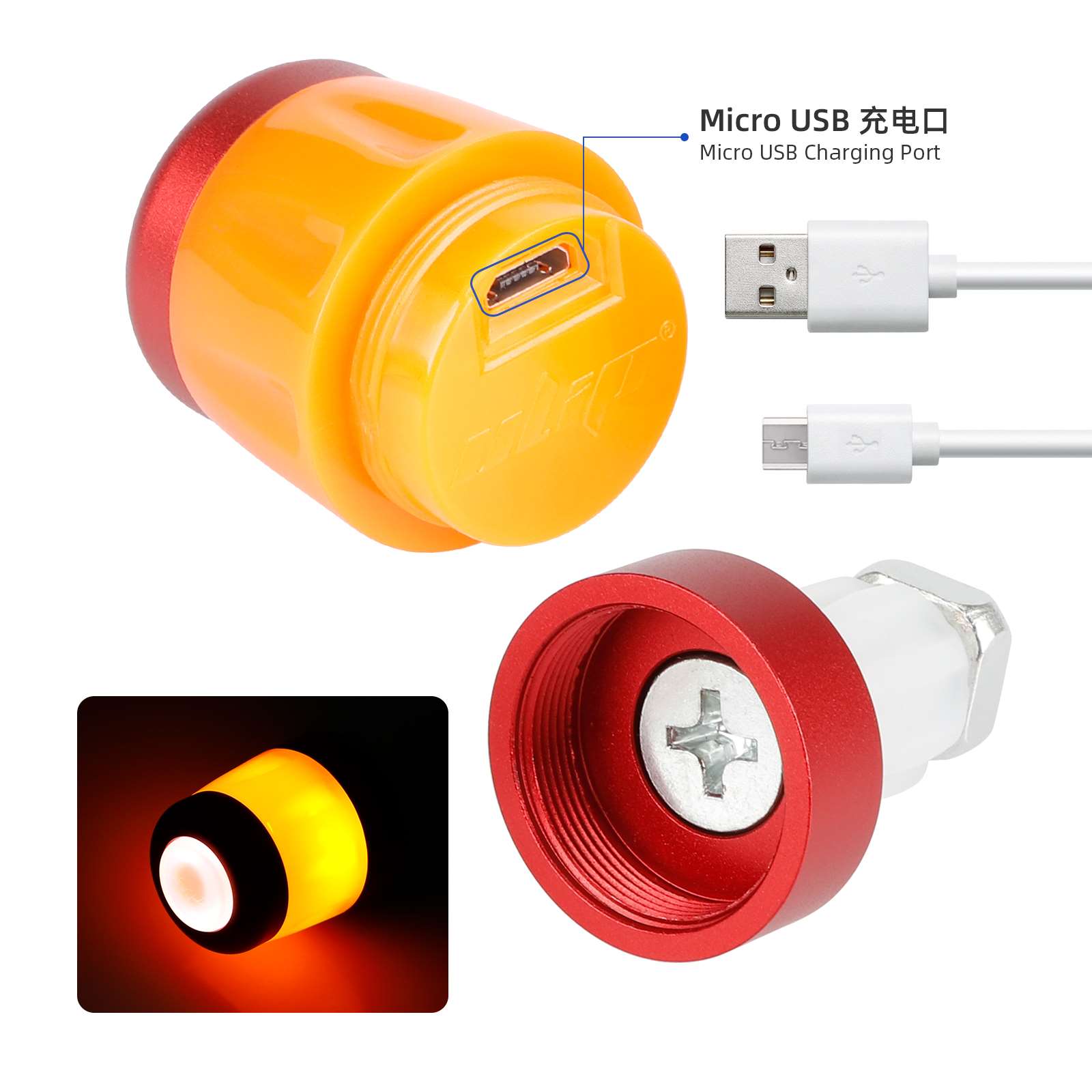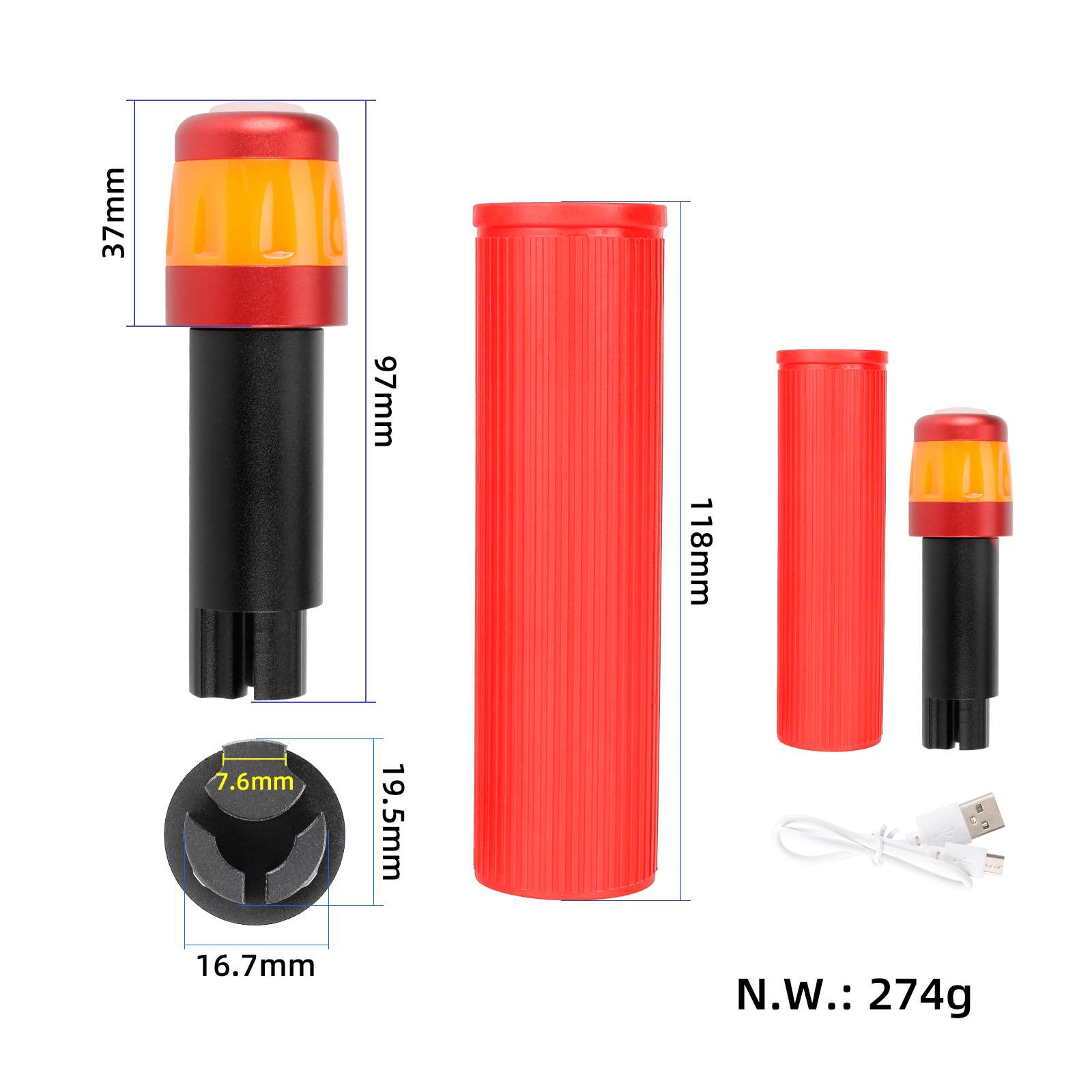 Juego de extensores de silicona Ulip con carga USB y luz para patinetes Segway Max G30. Mejora la seguridad y comodidad al conducir (empuñadura roja + varilla de extensión negra + luz roja y naranja).
