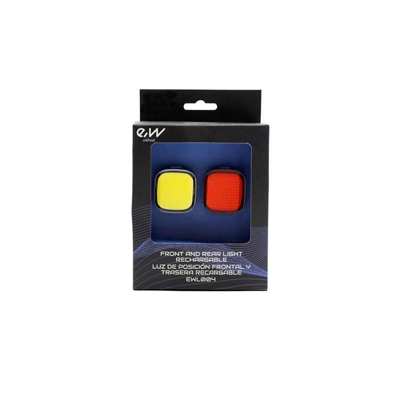 Juego de luces frontal y trasera recargable EWL004 de alta potencia que garantiza una visibilidad óptima en todo momento. La luz frontal proporciona un haz luminoso potente para iluminar el camino, mientras que la luz trasera asegura que te vean con claridad desde atrás. Ambas luces cuentan con batería recargable por USB, ofreciendo autonomía prolongada y recarga fácil. Diseño compacto y resistente al agua para uso seguro bajo cualquier condición climática. Instalación sencilla y compatible con la mayoría de patinetes eléctricos. Perfecto para aumentar tu seguridad durante los desplazamientos nocturnos o en condiciones de poca luz.