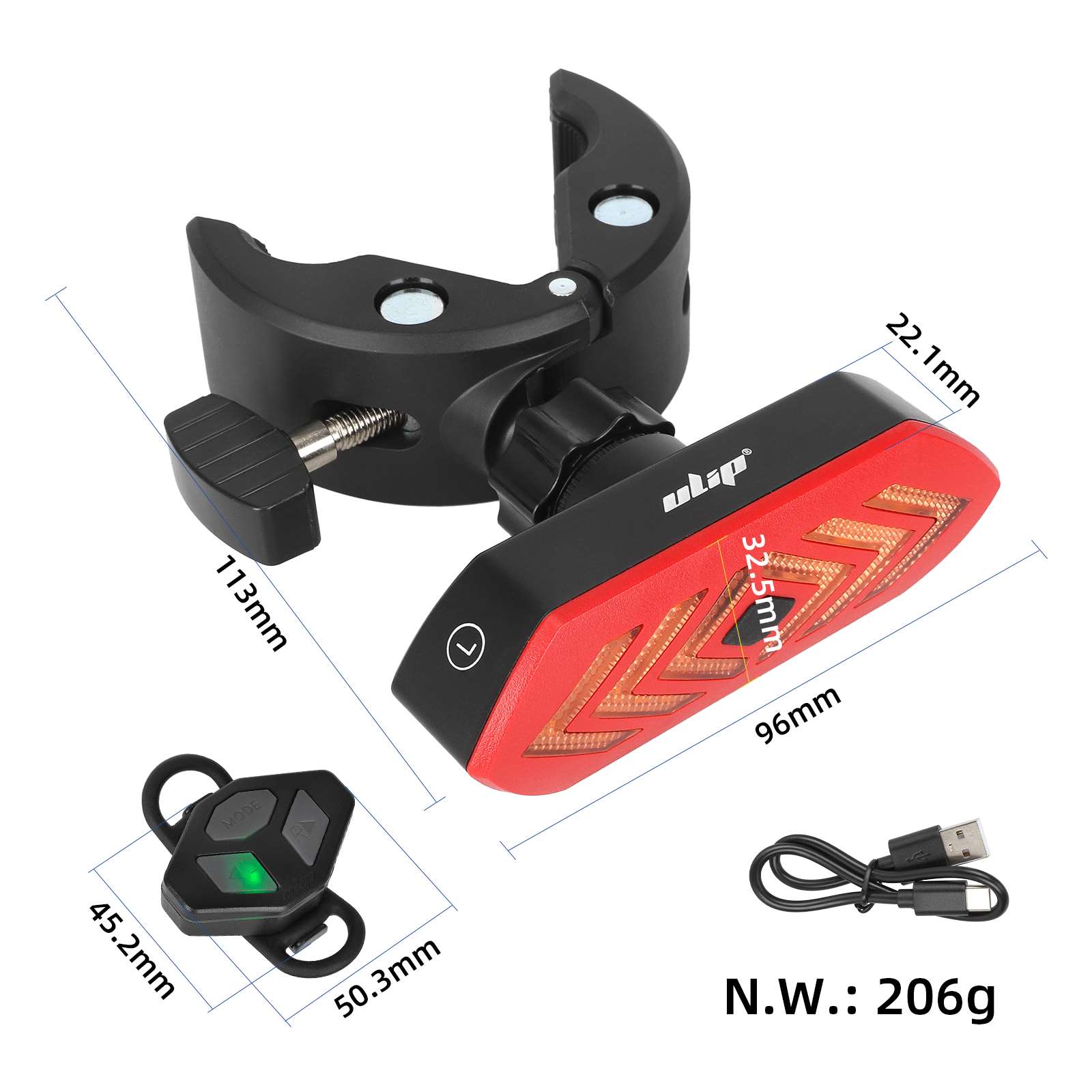 Luz trasera con señal de giro remota recargable Ulip mejorada, recargable remotamente para scooter eléctrico/bicicleta eléctrica, guardabarros trasero ajustable, accesorios de señal de giro recargables por USB