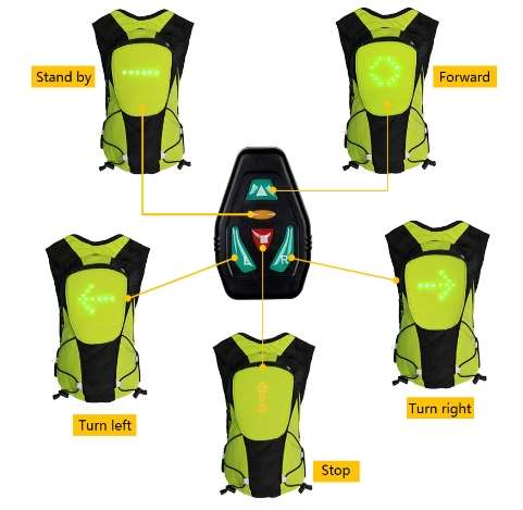 Mochila con luz LED de advertencia y control remoto inalámbrico de 5 l para ciclismo. Mochila con luz LED de advertencia y control remoto inalámbrico de 5 l para ciclismo.