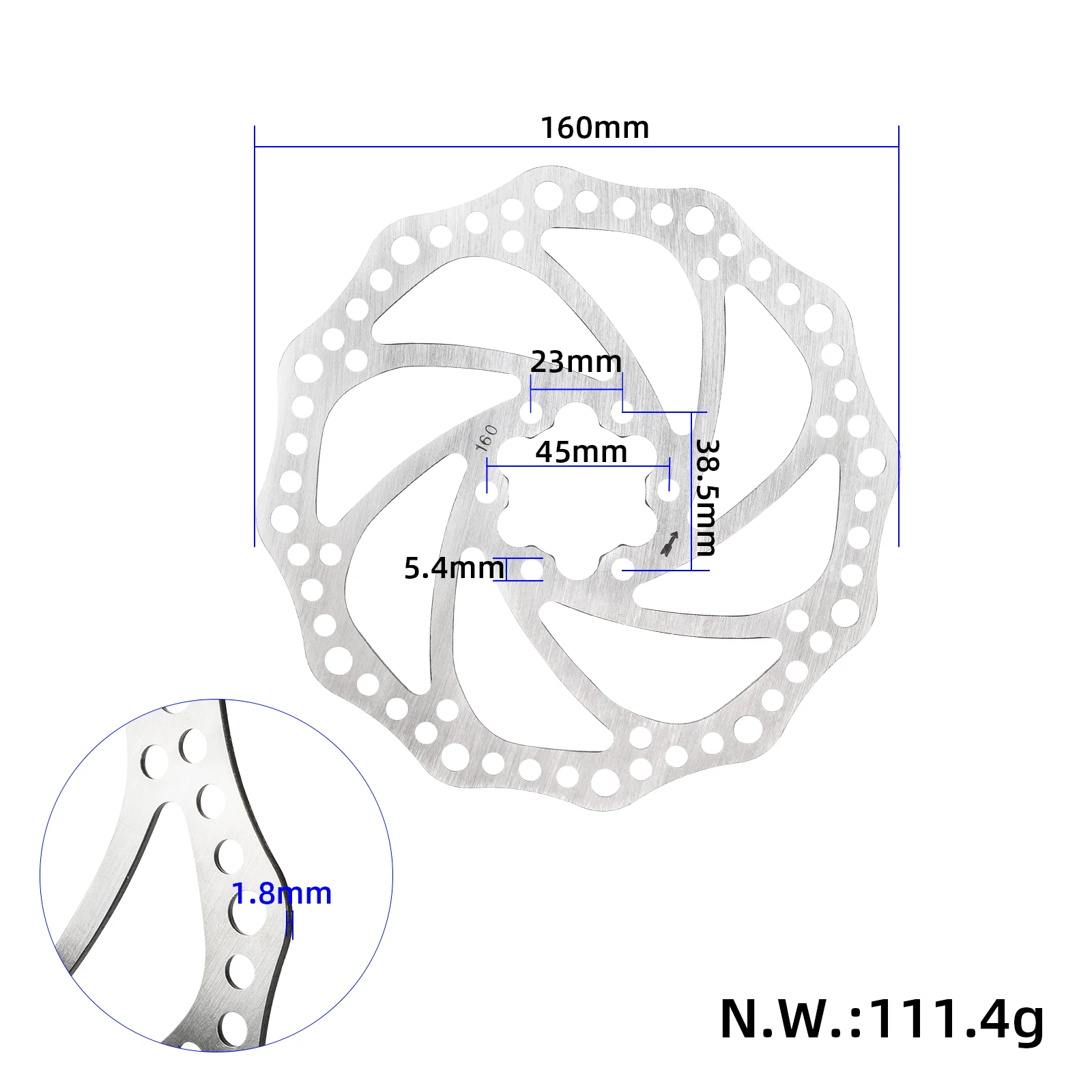 Rotor de freno de disco de 160 mm Rotores de freno hidráulicos Rotor de calidad de acero inoxidable de alta resistencia y peso ligero