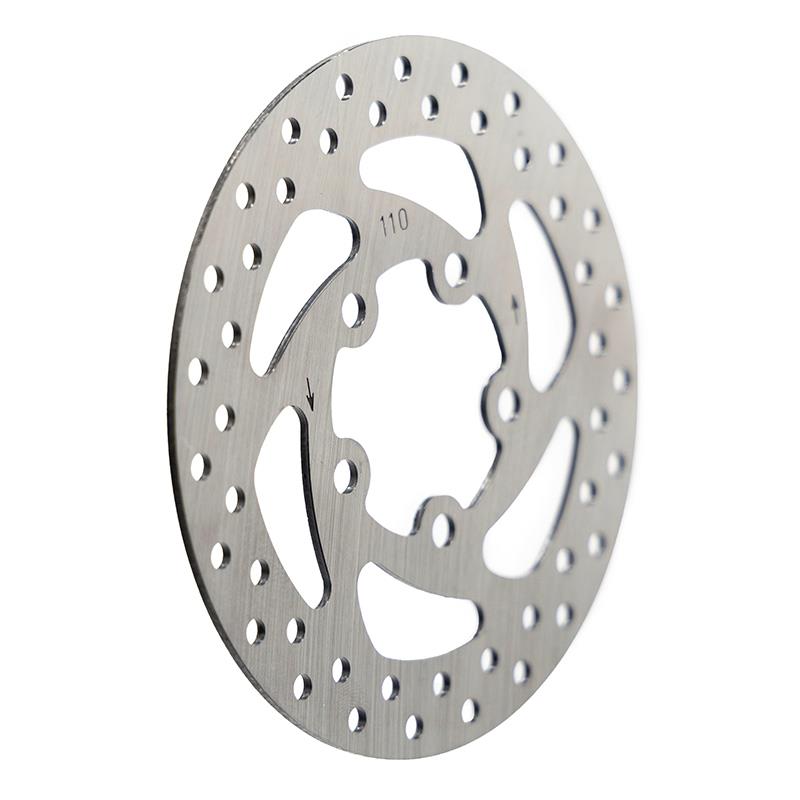 Con 110mm de diámetro y cinco puntos de anclaje, este disco ofrece un ajuste preciso para evitar movimientos indeseados. El acero endurecido garantiza resistencia al desgaste en frenadas frecuentes. El diseño abierto facilita la evacuación del calor, reduciendo la fatiga del material y alargando su vida útil.