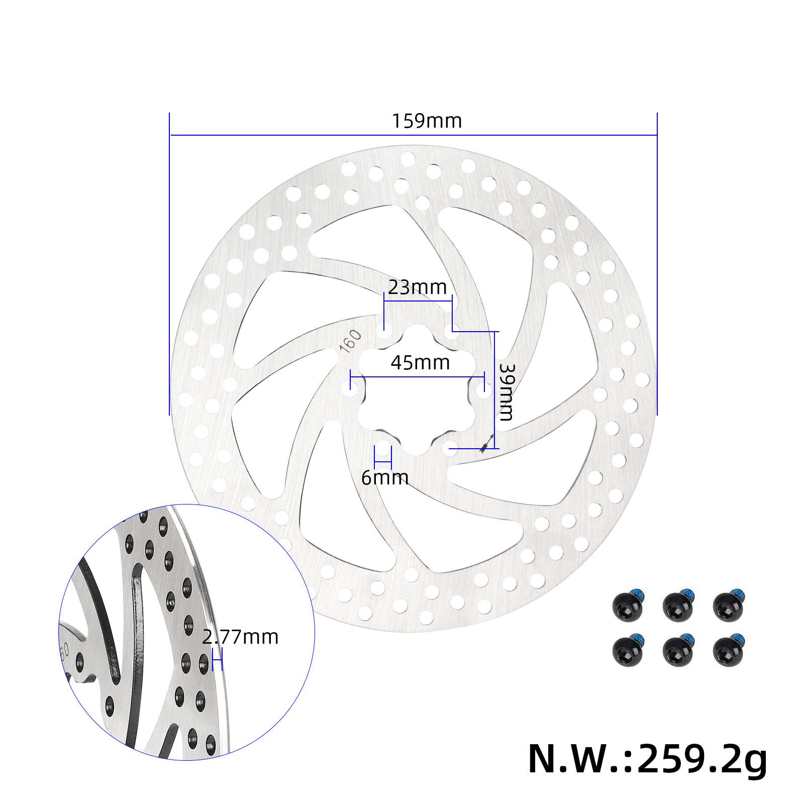 Rotor de freno de disco de 160 mm y 6 orificios para bicicleta eléctrica, scooter, bicicleta eléctrica, disco de freno de 2,8 mm de grosor, accesorios para ciclismo al aire libre.