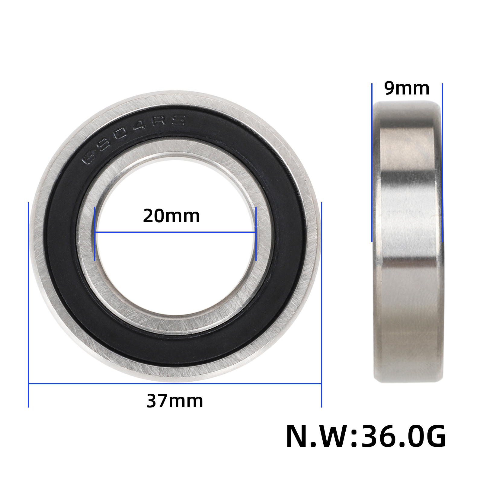 Rodamiento 6904 20*37*9 mm ABEC-3 440C Rodamientos de bolas de acero inoxidable Rodamiento de bolas de acero inoxidable Rodamiento de bolas 6904 Rodamientos de acero cromado con doble sellado 6904RS para bicicleta BB90 Soporte inferior
