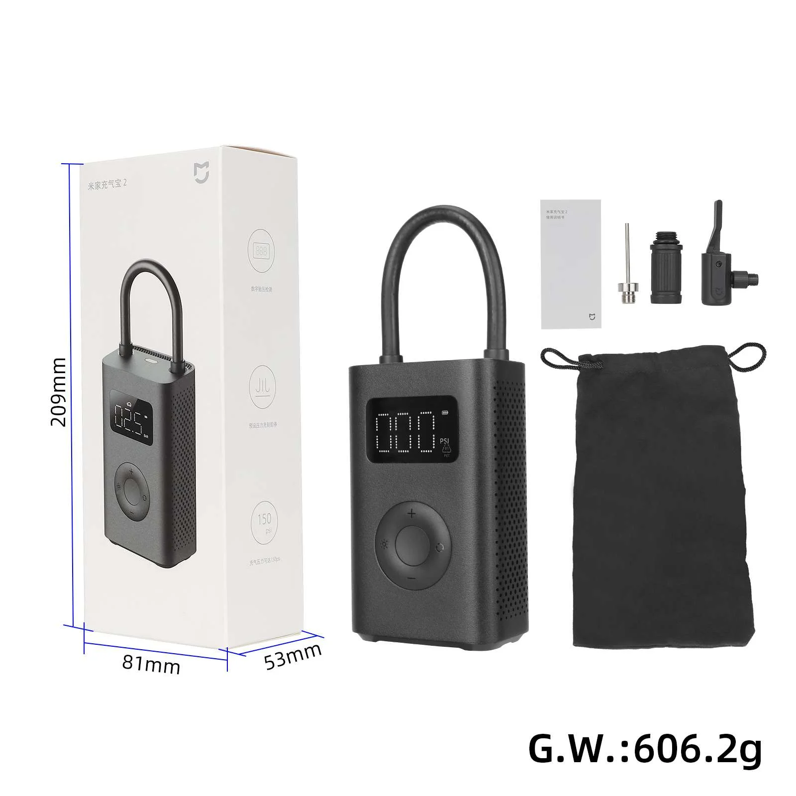 Bomba de aire portátil inalámbrica para coche Xiaomi 2, con un solo botón, pantalla digital LED y monitor de presión de neumáticos, con fuente de alimentación móvil.