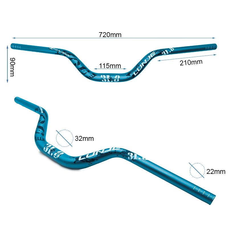Manillar de 720 mm de ancho y 90 mm de elevación en color azul,diseñado para ofrecer un control óptimo y ergonomía en la conducción. Ideal para bicicletas de montaña y personalización de vehículos,proporcionando una posición cómoda y alta. Su acabado en azul añade un toque estético a cualquier configuración.