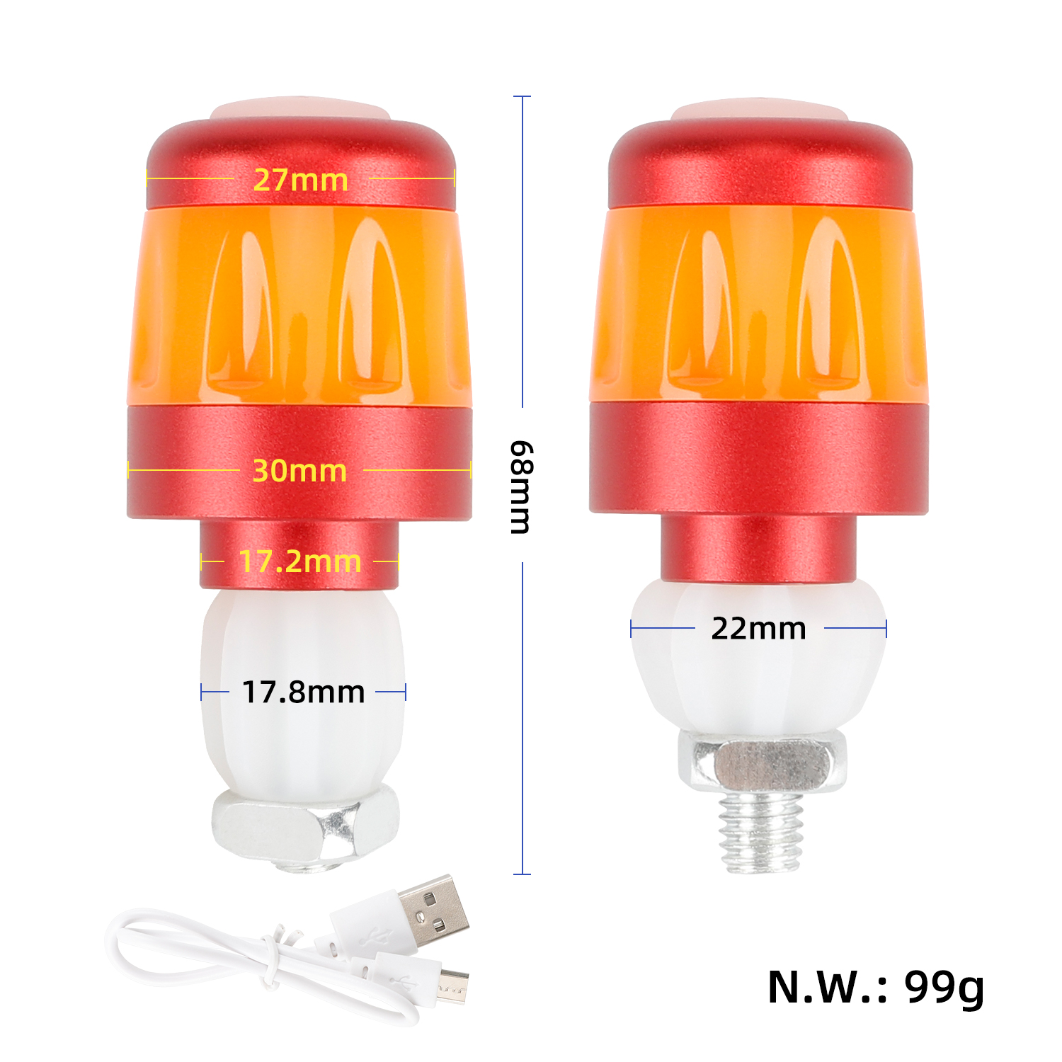 2 luces indicadoras laterales con enchufe de agarre rojo y naranja y luces de advertencia de seguridad inteligentes con 3 modos de luz, luces de manillar para patinete eléctrico, luces de advertencia LED, tapones para extremos de manillar, luces de señal de giro impermeables