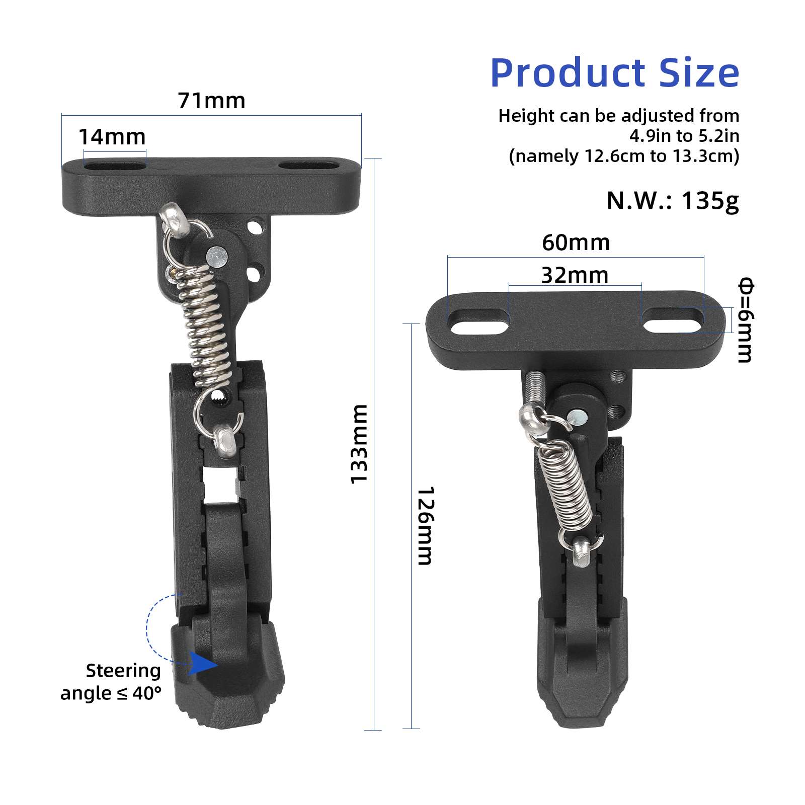 Soporte de pie ajustable Ulip Black para patinete eléctrico Xiaomi 4, 4 Lite, 4 Pro, Ninebot F20, F30 y F40. Soporte de pie mejorado. Soporte de estacionamiento ajustable.