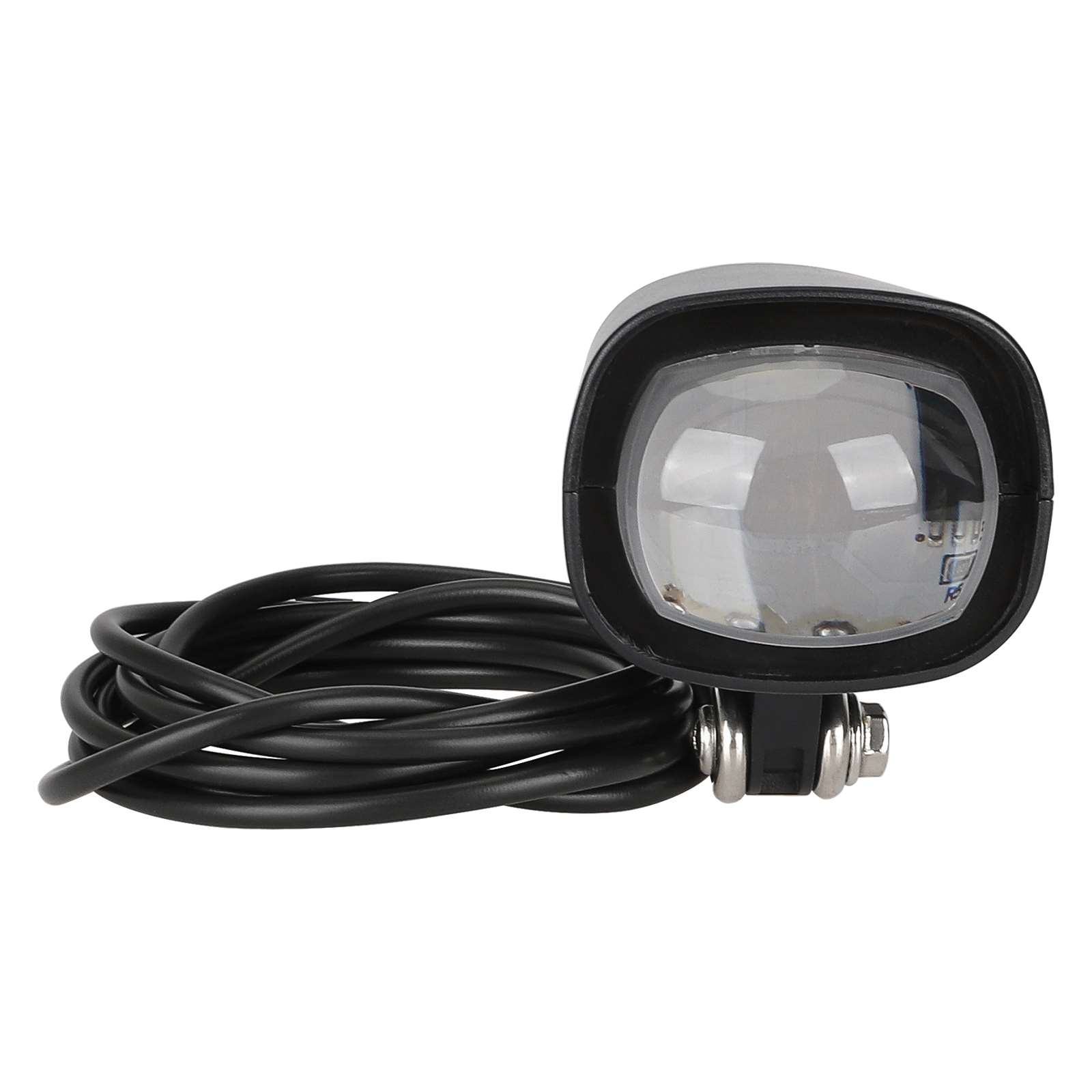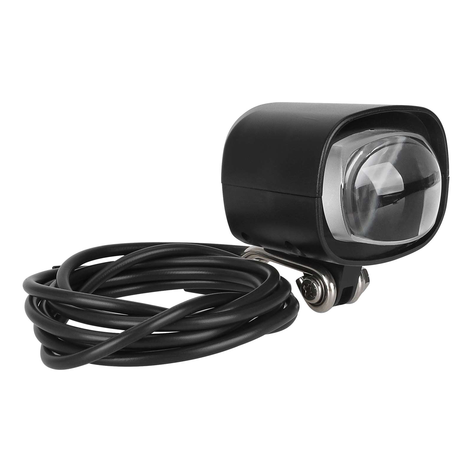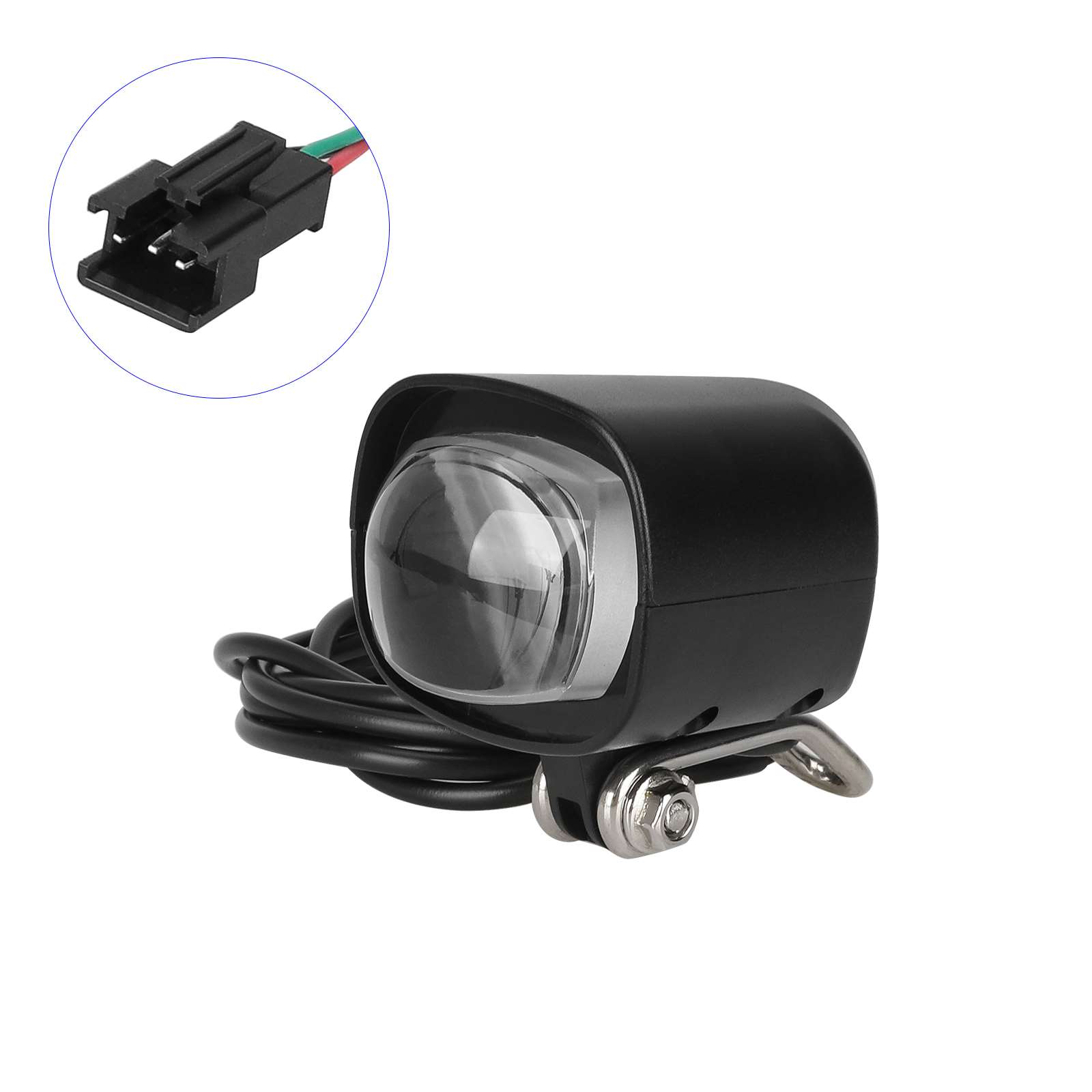 Faro delantero de 12 V a 60 V con bocina integrada, faro LED para bicicleta eléctrica dos en uno, bocina para scooter eléctrico, faro LED para bicicleta eléctrica, luz delantera impermeable, diseño de plástico ABS de 36 V y 60 V con cable de 115 cm de longitud.