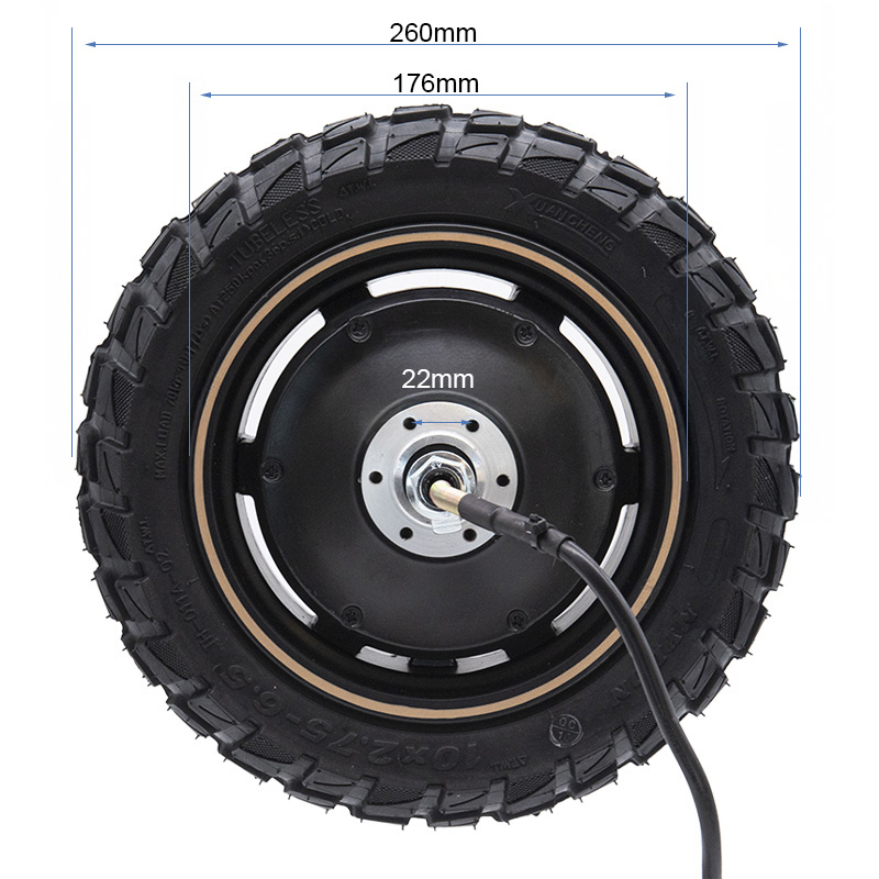 Este motor brushless es conocido por su eficiencia y durabilidad, lo que significa más velocidad y potencia para tus viajes. Es capaz de ofrecerte una experiencia de conducción emocionante y eficiente. Ya sea que necesites un reemplazo o desees mejorar tu patinete actual, este motor es una elección acertada. Su instalación es sencilla, y en poco tiempo, estarás disfrutando de un patinete eléctrico de alto rendimiento. Incluye neumático tubeless offroad de 10×2,75-6,5 de marca Xuancheng. Características: Voltaje nominal: 48V Potencia nominal: 800W