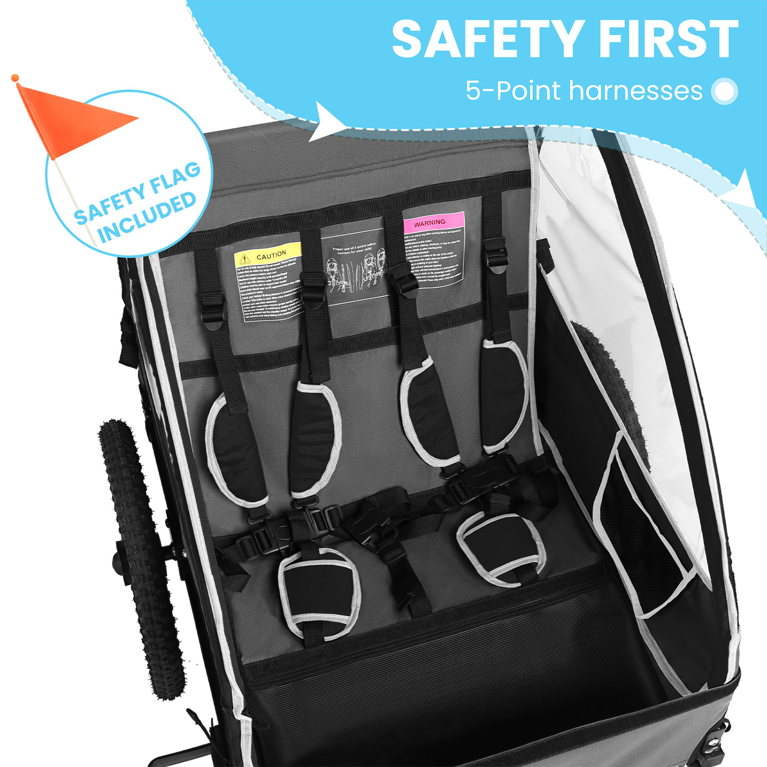 Tus hijos estarán seguros y cómodos gracias a los arneses de 5 puntos y los asientos ergonómicos. 👨‍👩‍👧‍👦