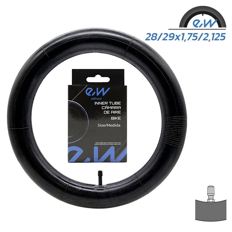 Cámara de aire para bicicletas de las medidas 28/29×1,75/2,125,diseñada para un rendimiento óptimo en todo tipo de terrenos. Compatible con llantas VR Ewheel,proporciona una excelente capacidad de absorción de impactos y durabilidad. Ideal para ciclistas que buscan un componente de repuesto confiable y de calidad para mantener su bici en condiciones óptimas de funcionamiento.