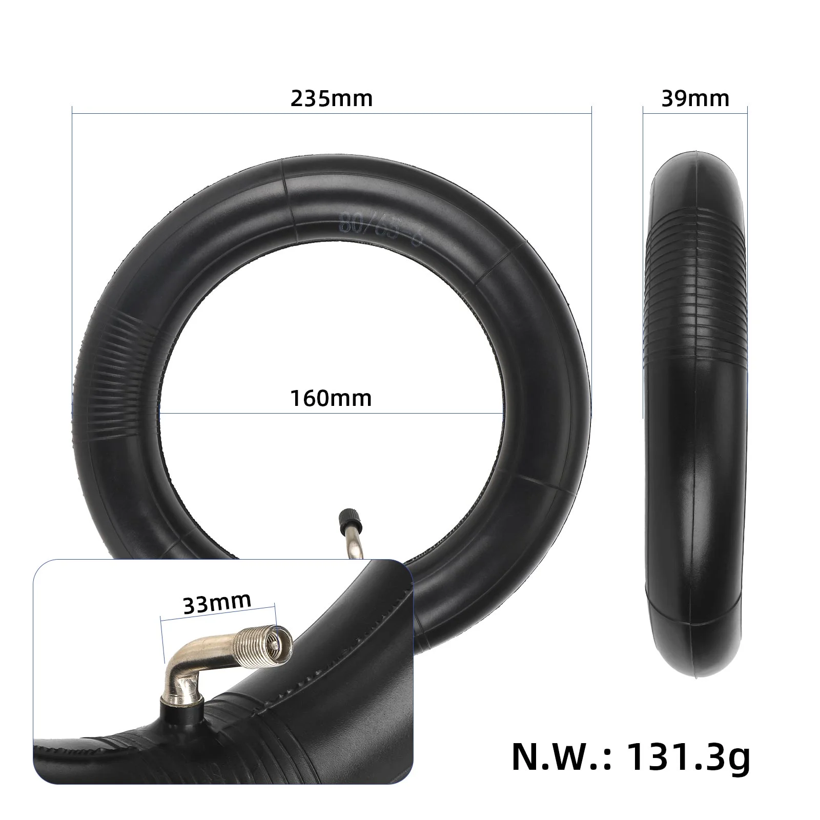 Cámara de aire 80/65-6 con válvula exterior de 45 grados, cámara de 10 pulgadas, 80/65-6