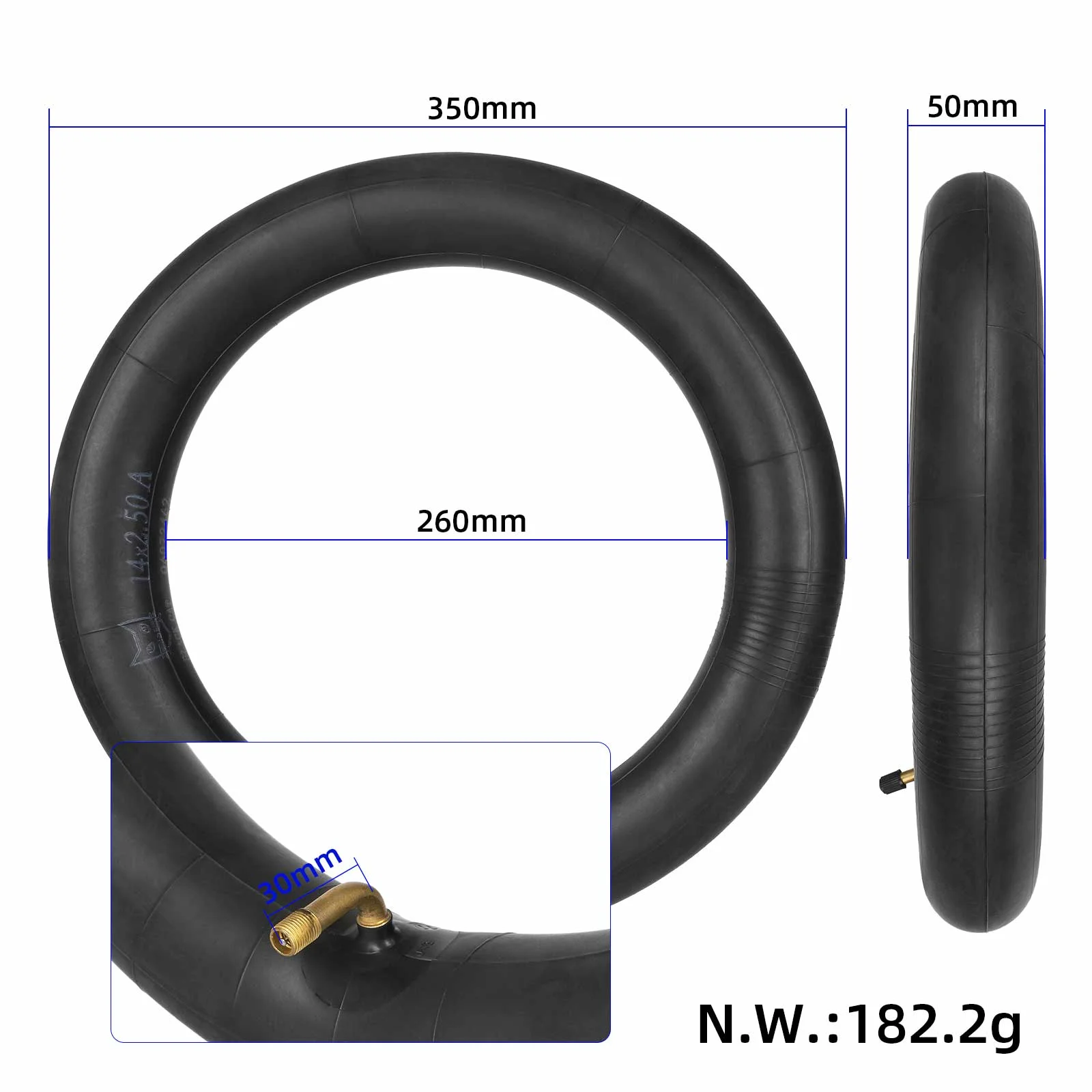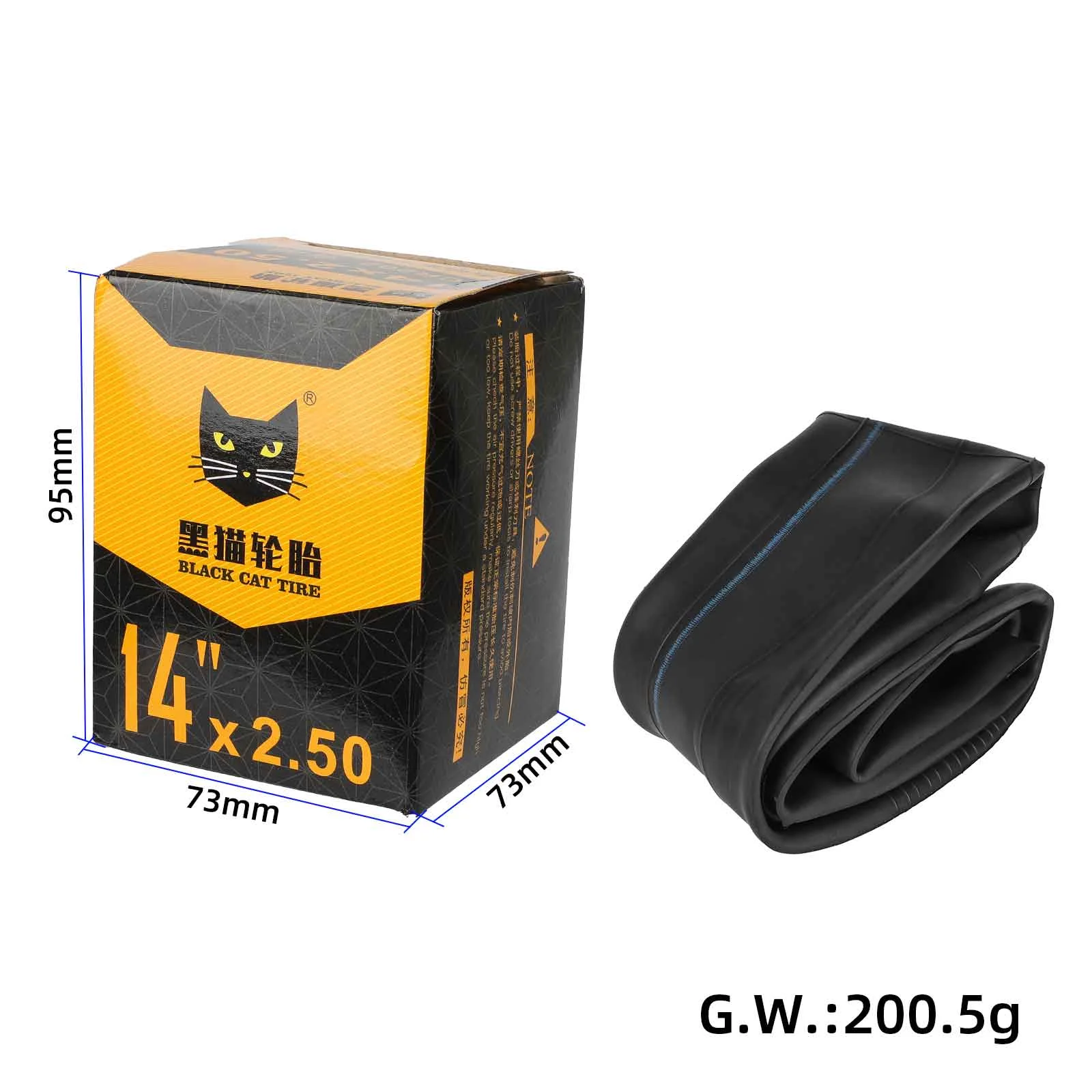 Cámara de aire Blackcat 14×2,50 con válvula de 90° hacia afuera, accesorios para vehículos eléctricos, neumáticos de repuesto de caucho butílico de 14×2,50 y 90×90 grados.