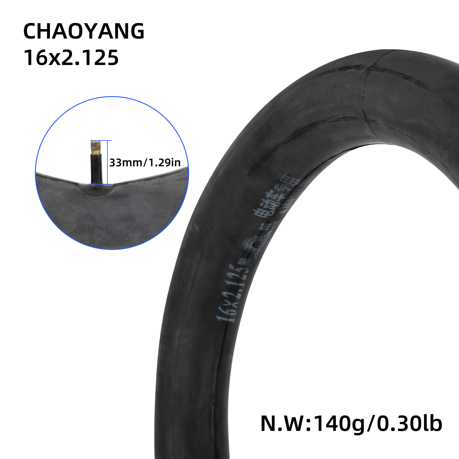 Cámara de aire Chaoyang 16×2.125 con válvula recta para bicicleta eléctrica de 16 pulgadas (16×2.125)