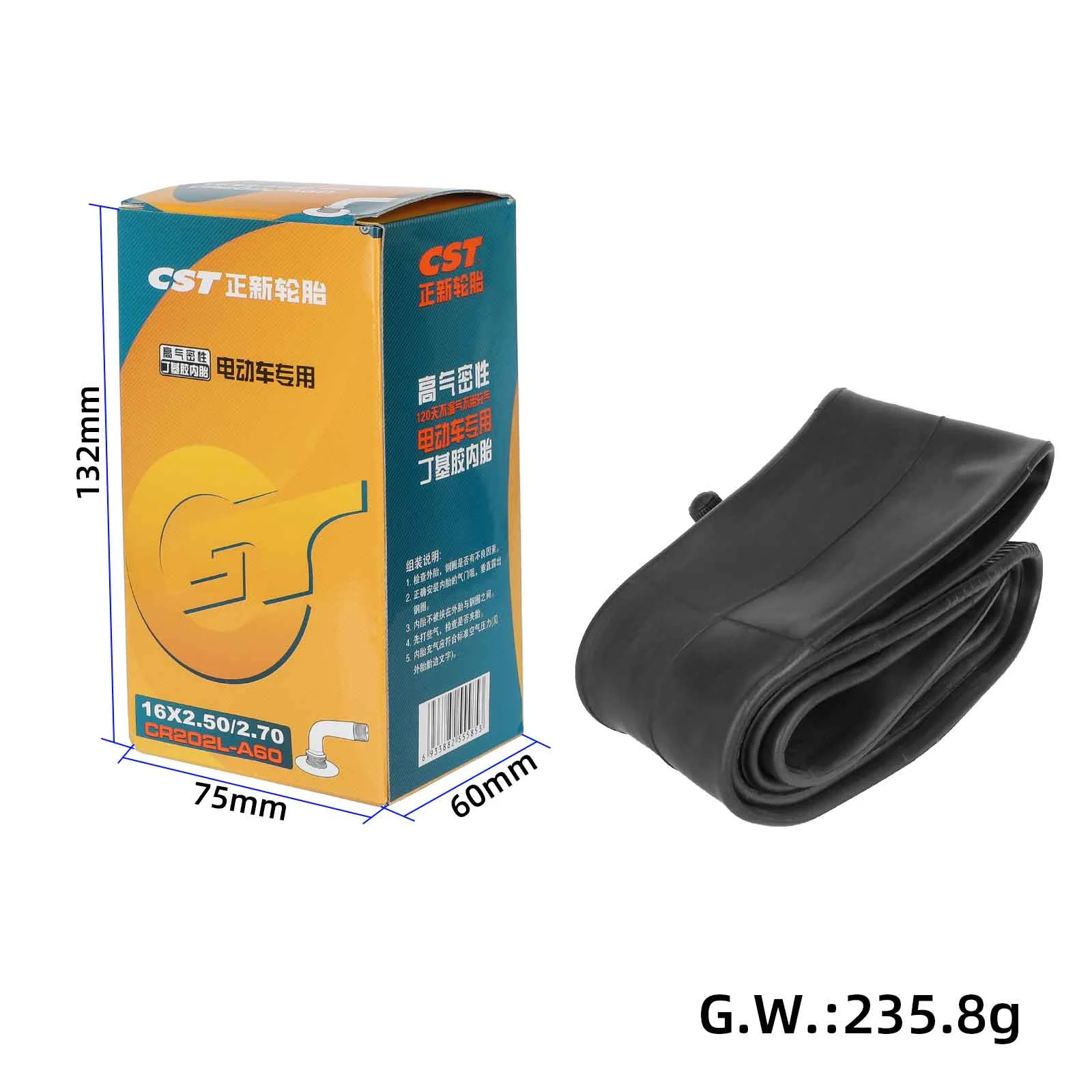 Cámara de aire CST 16 x 2,5 con válvula de 60 mm, cámara de aire de 16 x 2,50 para scooters eléctricos de gasolina y bicicletas eléctricas, cámara de 16 x 2,50 con vástago de válvula doblado, accesorios para scooters eléctricos de 16 pulgadas