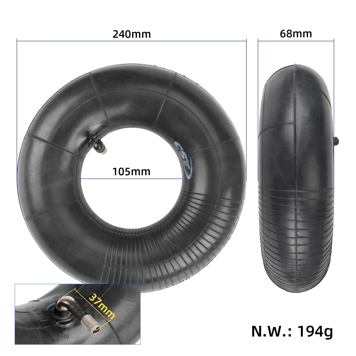 Inicio / Shop / PRODUCTOS / RUEDAS / CAMARA / Cámara de aire CST 4.10/3.50-4 con válvula doblada hacia afuera a 90°