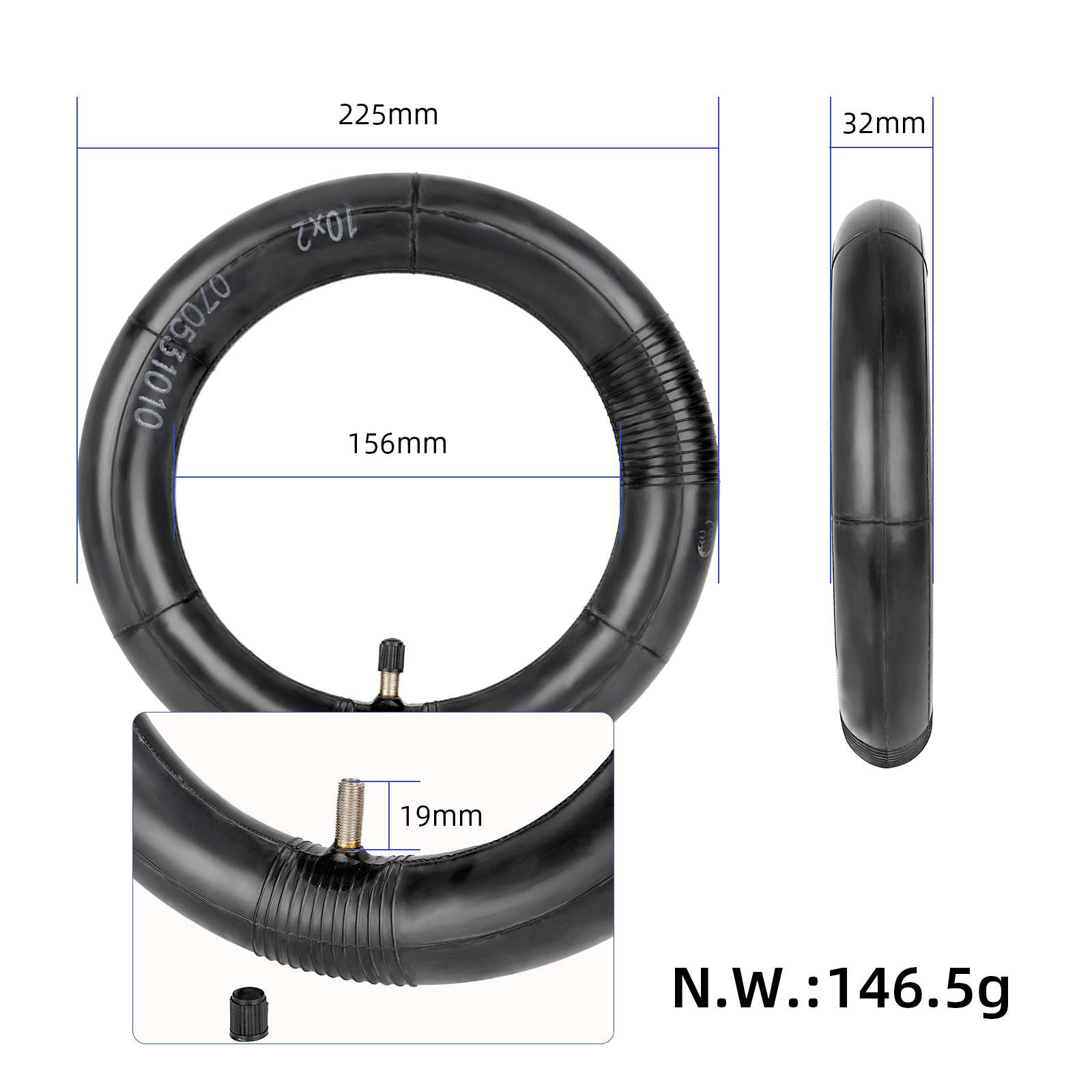 Cámara de aire de 10 x 2 pulgadas con válvula recta y cámara mejorada para patinete Xiaomi M365 Pro o neumático Wanda P1237 de 10 x 2 pulgadas (54-156), cámara de aire recta para patinete eléctrico de 10 x 2 pulgadas con cámara de caucho butílico engrosado.