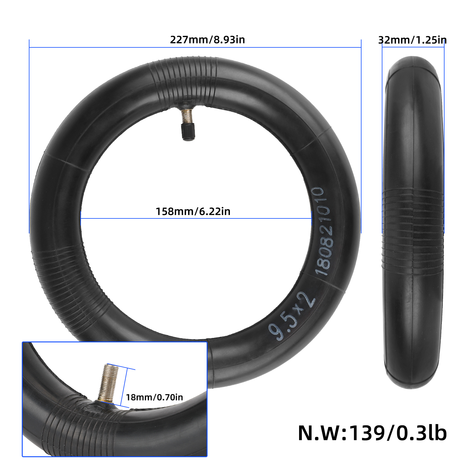 Cámara de aire ULIP 9,5 x 2 con válvula recta para patinete eléctrico deportivo Niu KQI3 Max Pro de 9,5 pulgadas. Manguera de repuesto NIU KQi2 KQi2 Pro con paso engrosado y válvula de 0°. Adecuada para neumáticos de 9,5 x 2 y 9,5 x 2,5.