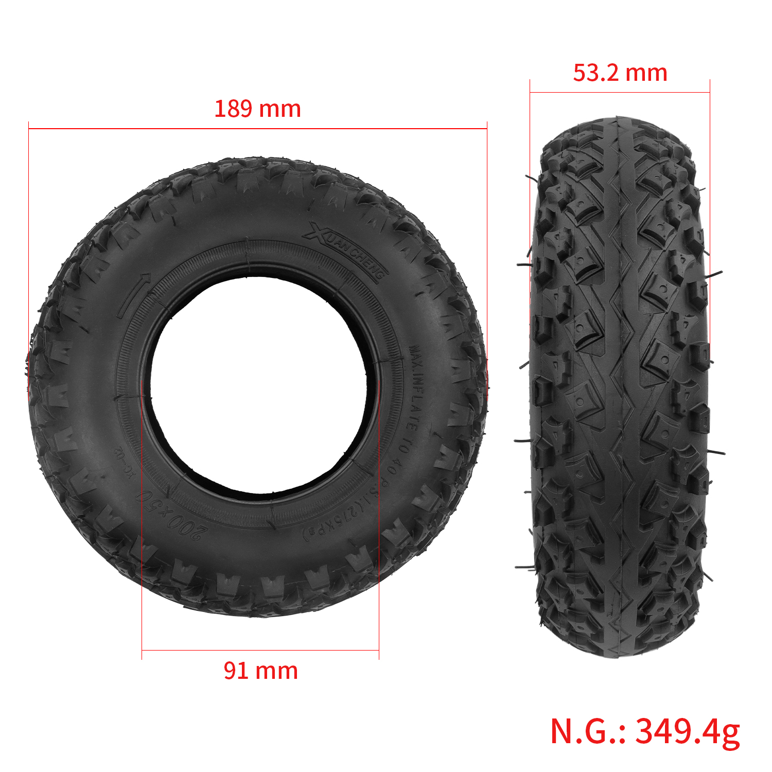 Neumático todoterreno de 8 pulgadas (200 x 50), interior y exterior, para scooter eléctrico de gasolina, scooter eléctrico, silla de ruedas, accesorios para neumáticos de 200 x 50