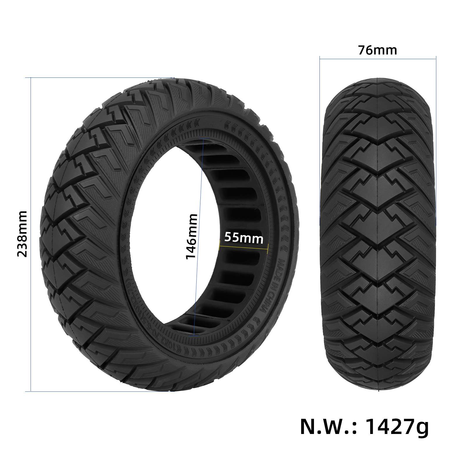 Neumático sólido todoterreno Ulip 10*2.70-6.5 (10*2.75) negro - Imagen 6