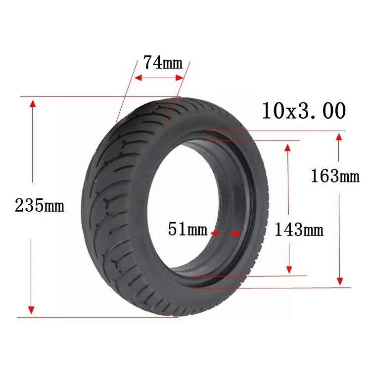 Neumático sólido de 10 x 3 pulgadas para patinete eléctrico plegable de 10 pulgadas, ensanchado, a prueba de explosiones, sin cámara, de caucho sin aire