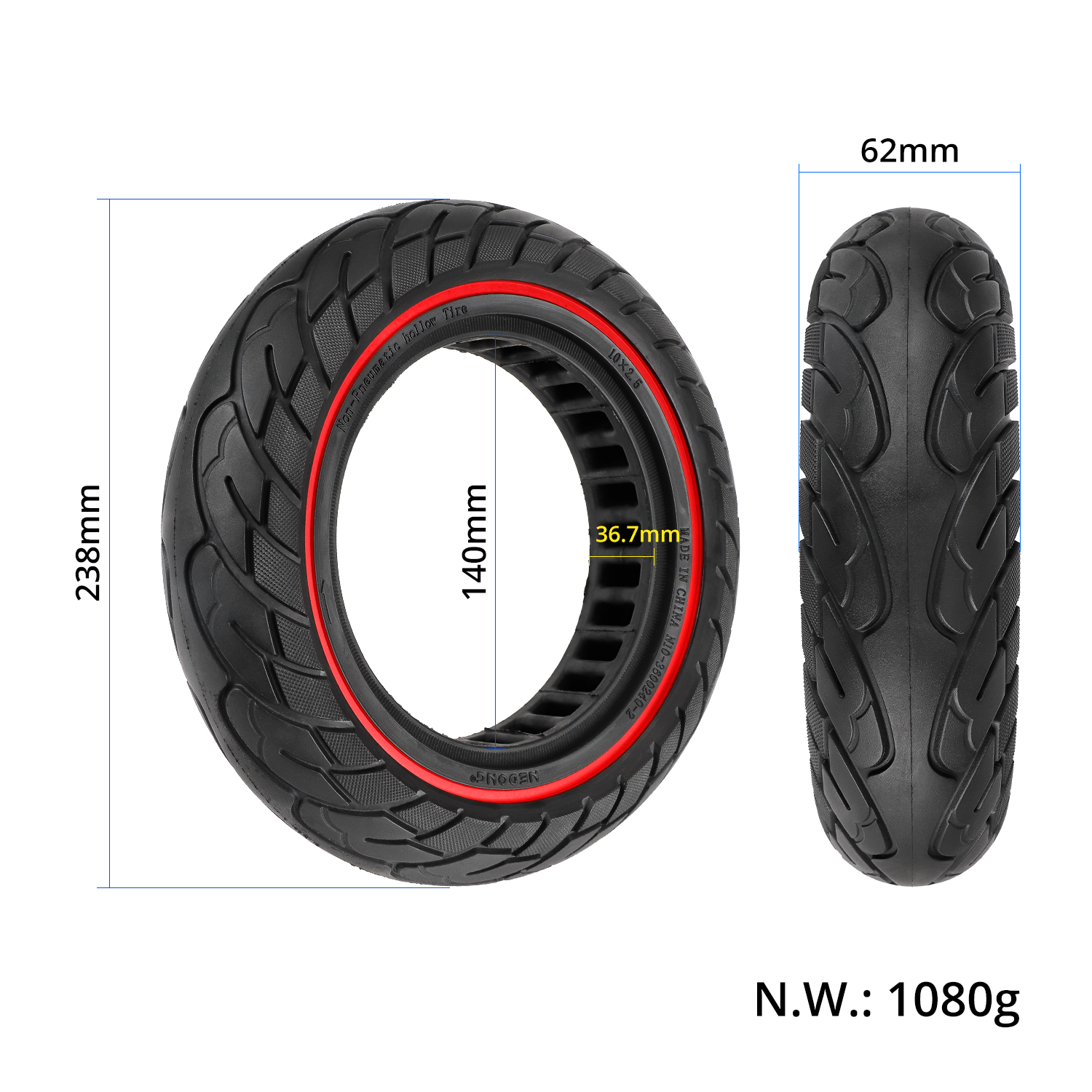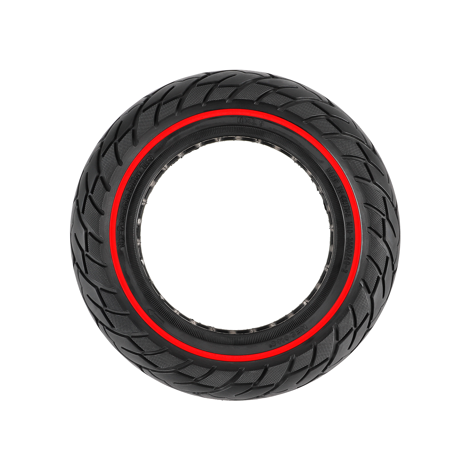 Neumático sólido de 10 pulgadas con círculo rojo y ranura de 37 mm 10X2.5 10×2.50 para patinete eléctrico KUGOO M4 / M4 Pro, con interior de nido de abeja y lunares, piezas de goma 10×2.5-6.1, neumáticos todoterreno sólidos de 10 pulgadas, resistentes al desgaste y a prueba de pinchazos.