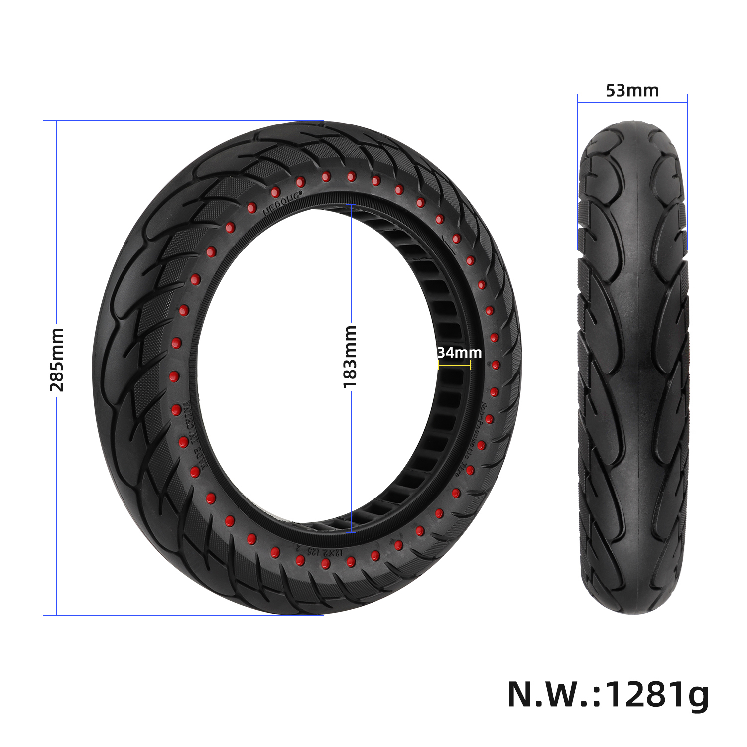 Neumático sólido de 12 x 2,125 con puntos rojos y ranura de 34 mm. Neumático sólido de 12 x 2,125 de 12 pulgadas, 12 1/2 x 2 1/4 (57-203). Neumático sólido de goma para scooters eléctricos, bicicletas eléctricas, resistente al desgaste y a prueba de explosiones.