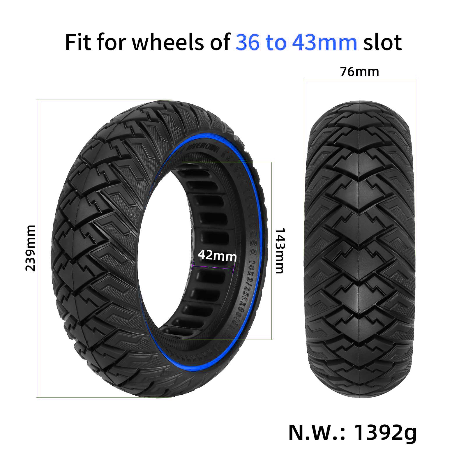 Neumático sólido Ulip 10*3/255*80 (80/65-6) con círculo azul para scooters de 10 pulgadas, neumáticos 10*3 255*80 80/65-6 y scooters Speedual Grace 10 Zero 10X Kugoo M4 Pro Kaabo Mantis 10 Kaabo Wolf Warrior