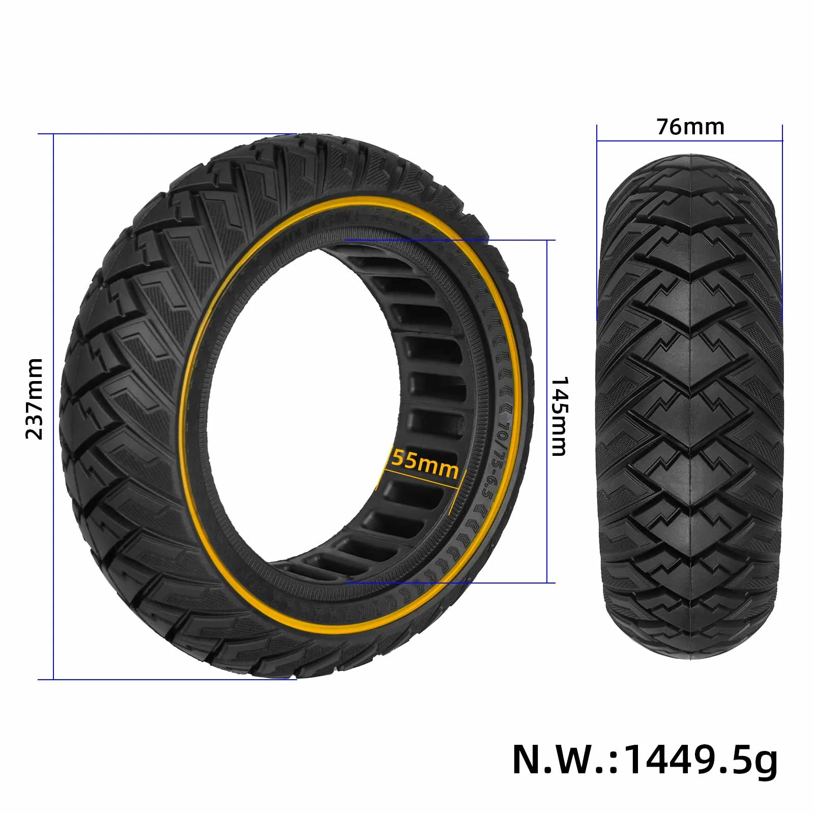 Neumático todoterreno sólido Ulip 70/75-6.5 con diseño de ala amarilla, a prueba de explosiones, para patinete eléctrico Ninebot Mini Pro 2, autoequilibrado, aeropatín, de 10 pulgadas.