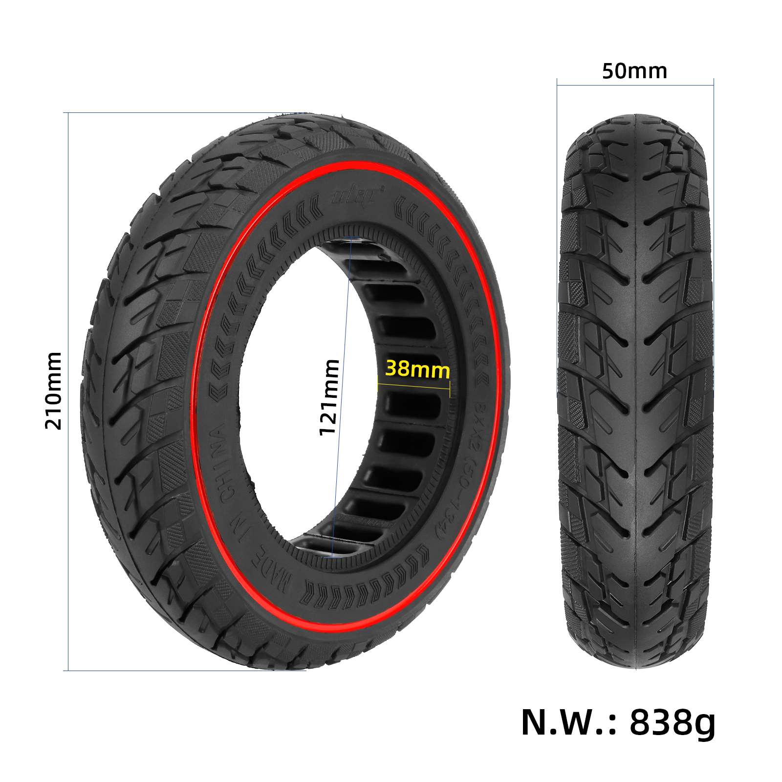 Neumático todoterreno sólido Ulip 8.5*2(50-134) con círculo rojo para scooters VSETT 9 y 9+ / ZERO 9 / Inokim Light 2 de 8.5 pulgadas 8.5×2(50-134) Neumático todoterreno sin cámara para scooter 9/8-Inokim Light 2 Reemplazo de neumáticos sólidos Neumáticos de goma E S