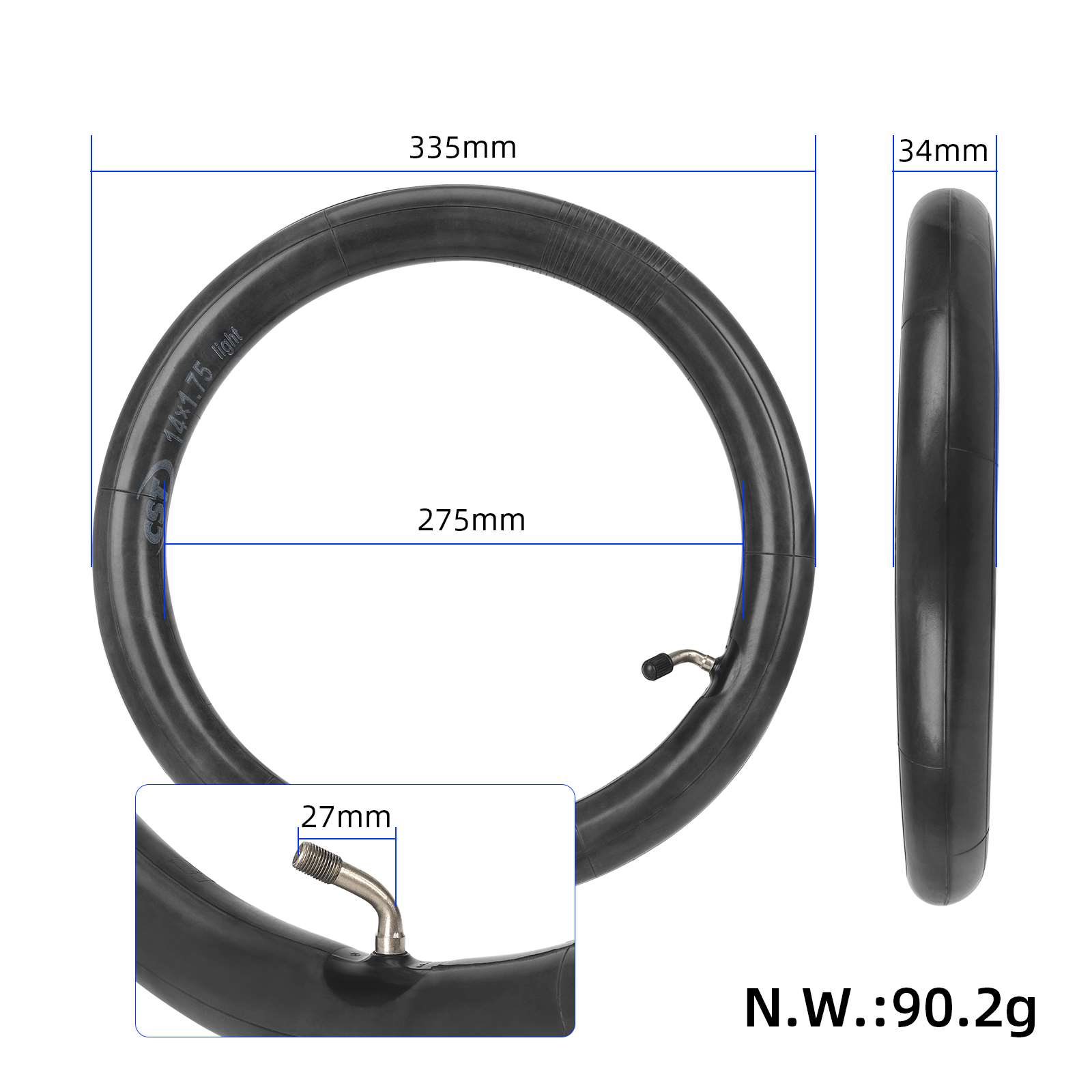 Cámara de aire CST 14 x 1,75 para bicicleta eléctrica, 14 pulgadas, 1,75 pulgadas, boquilla de gas curvada para cámara, cámara de aire para bicicleta infantil, cámara de aire para bicicleta eléctrica.