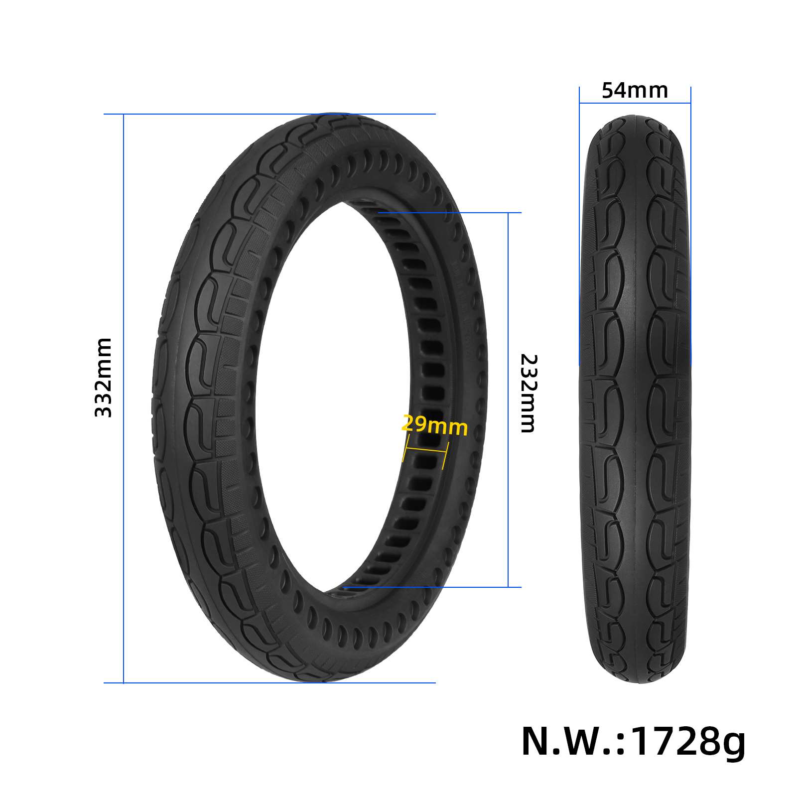 Neumático de panal de 14 x 2,125 pulgadas, color negro, con una sola fila de orificios y franja interior, plegable, para motocicleta eléctrica y bicicleta eléctrica. Neumático de panal de 14 x 2,125 pulgadas, color negro.