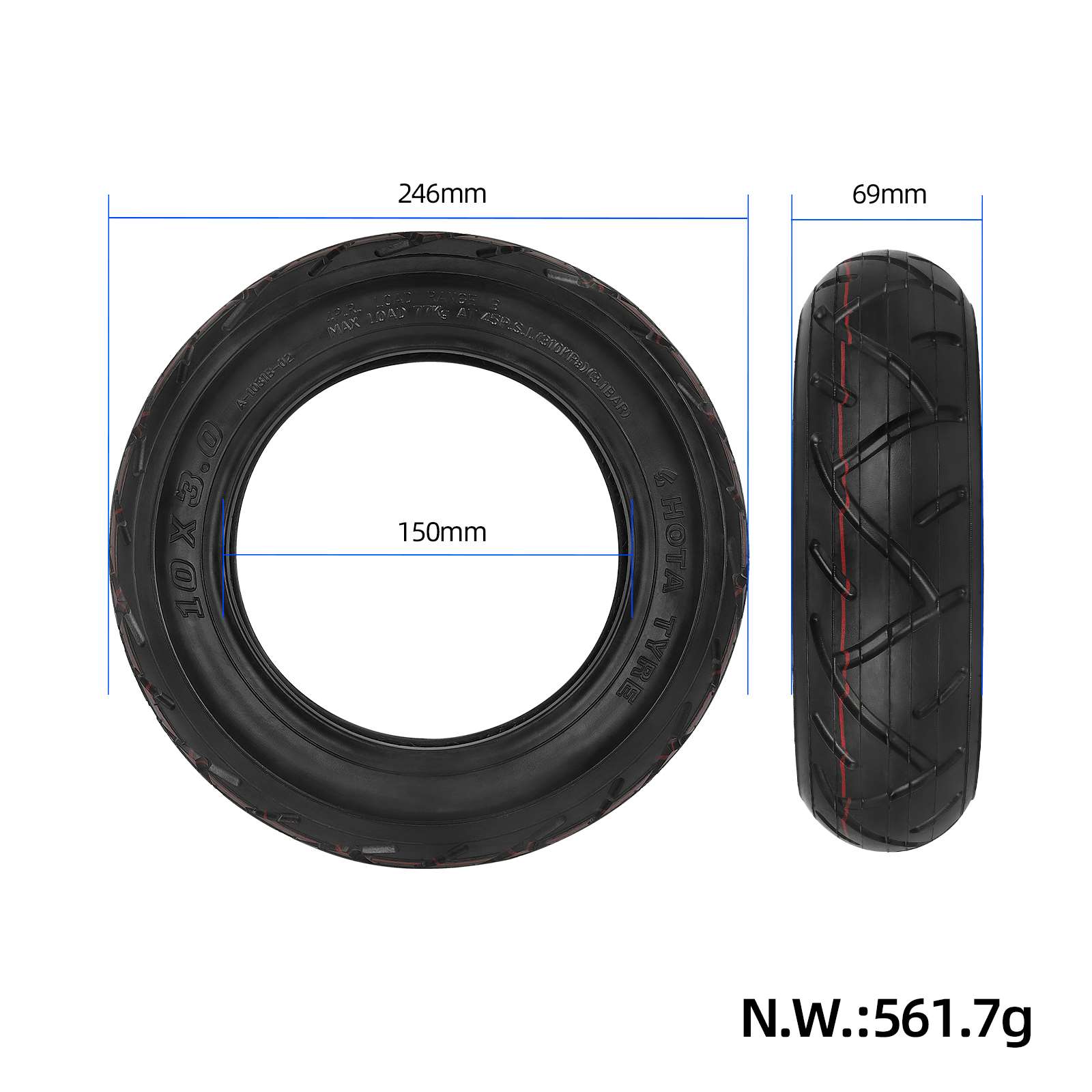 Neumático exterior ensanchado y engrosado HOTA 10*3 para patinete eléctrico, modelo de carretera, 10 x 3,0, Hota10 pulgadas