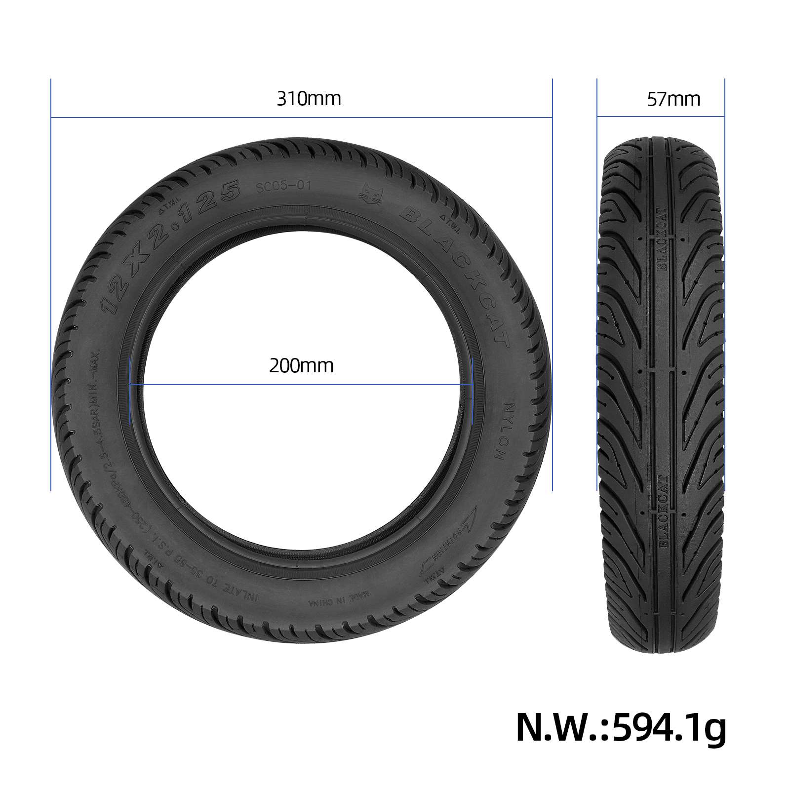 Neumático Blackcat 12×2.125 para bicicleta eléctrica, cómodo y al vacío. Compatible con scooters eléctricos de gasolina, bicicletas eléctricas, bicicletas plegables y bicicletas para niños.
