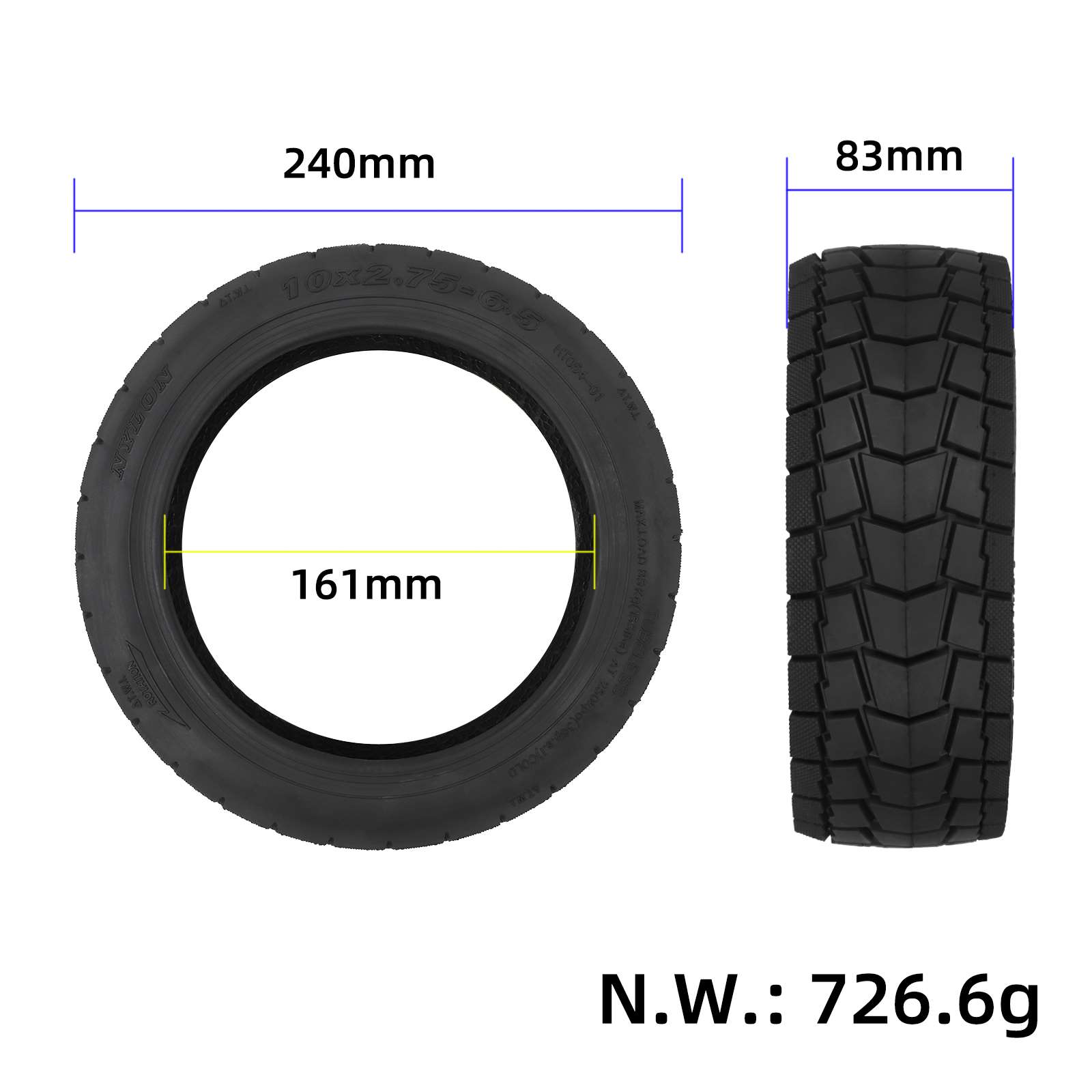 Neumático exterior para patinete eléctrico de 10 pulgadas, 10 x 2,75-6,5 pulgadas, para ciudad y carretera. Neumático de goma resistente al desgaste para patinete eléctrico Speedway 5 Dualtron 3. Neumático exterior todoterreno de 10 pulgadas, 10 x 2,75-6,5 pulgadas.