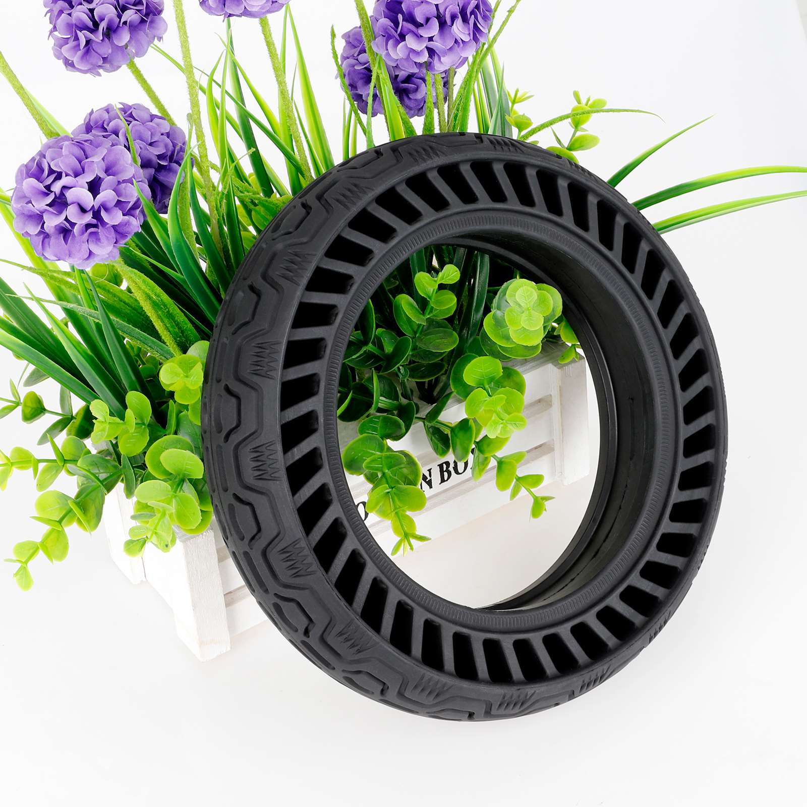 Neumático hueco de 10 x 2,5-6,5 pulgadas con ranura de 40 mm. Neumático sólido hueco de 10 x 2,5-6,5 pulgadas con ranura de 40 mm. Neumático a prueba de explosiones con absorción de impactos, adecuado para scooters eléctricos. Neumáticos antideslizantes y resistentes al desgaste.
