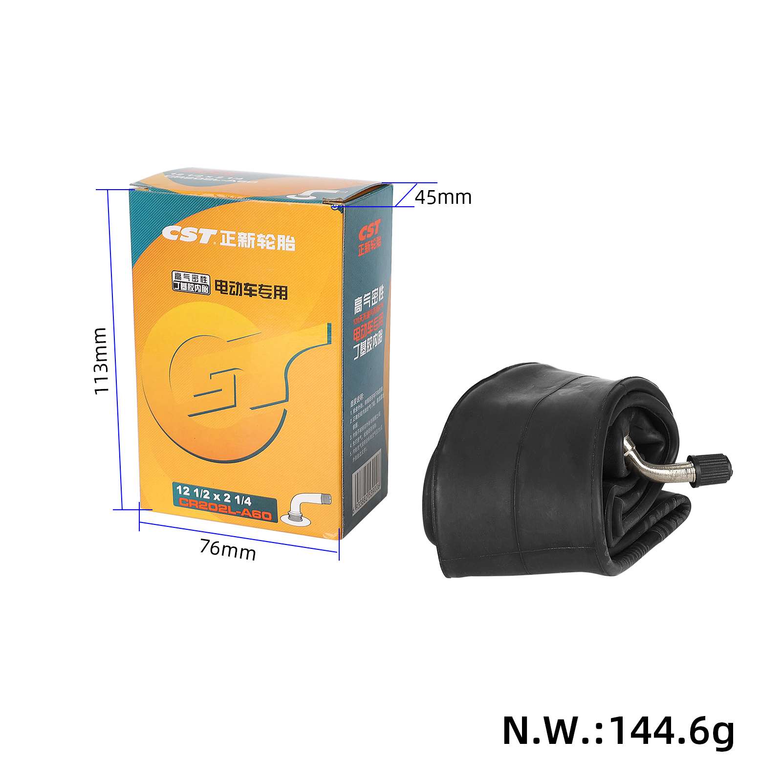 Cámara de aire CST de 12 pulgadas con válvula de 60 grados para patinete eléctrico, 12 1/2 × 2 1/4, accesorios para neumáticos de bicicleta, cámara de butilo de 12 pulgadas para patinetes eléctricos y bicicletas eléctricas.